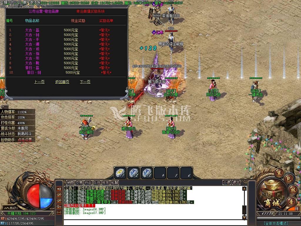 4月天城4F专属沉默三职业-带假人带光柱带攻略-沙捐-自动回收-大背包-RMB回收