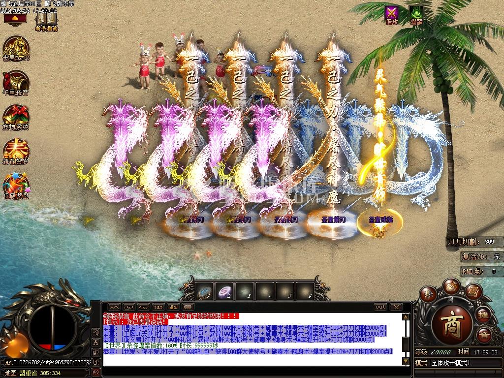 前面中号直接开通后,称号直接升到满级,时装等,预计1200左右附加5.0倍切割效果,打怪非常的快哦。