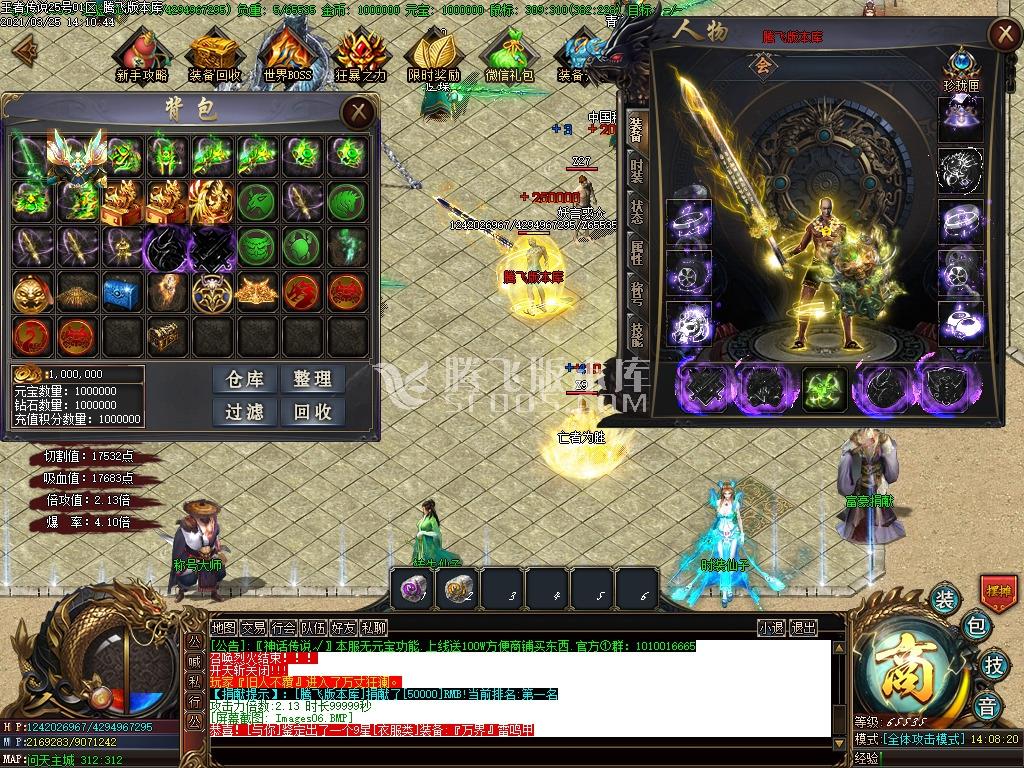 7月幻魂神器单职业-带假人-带光柱-大背包-沙城捐献-自动回收-RMB-通天塔
