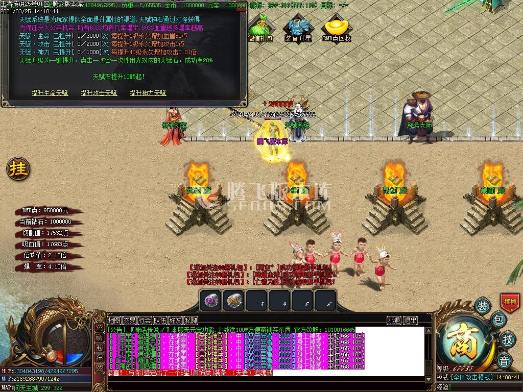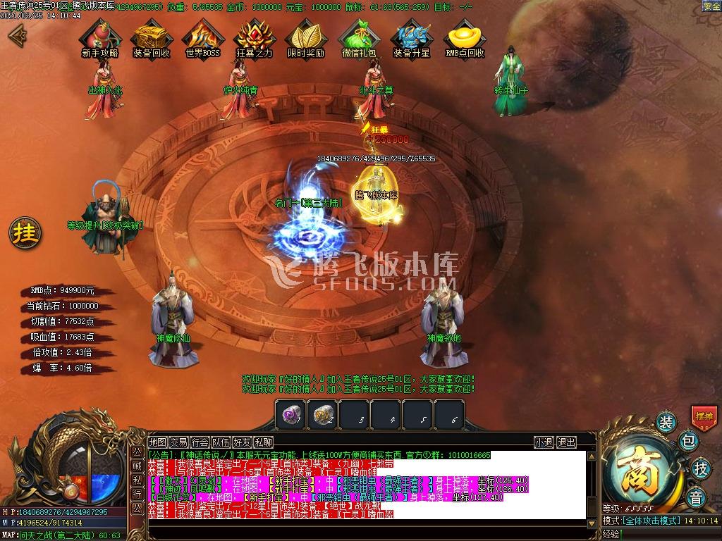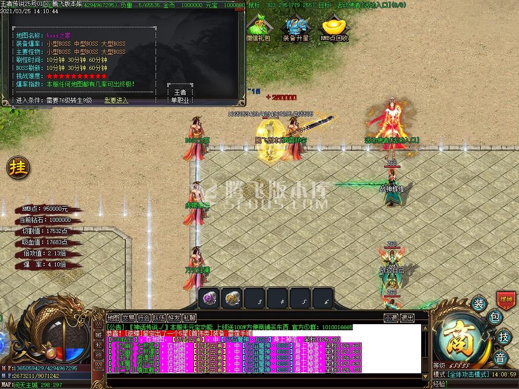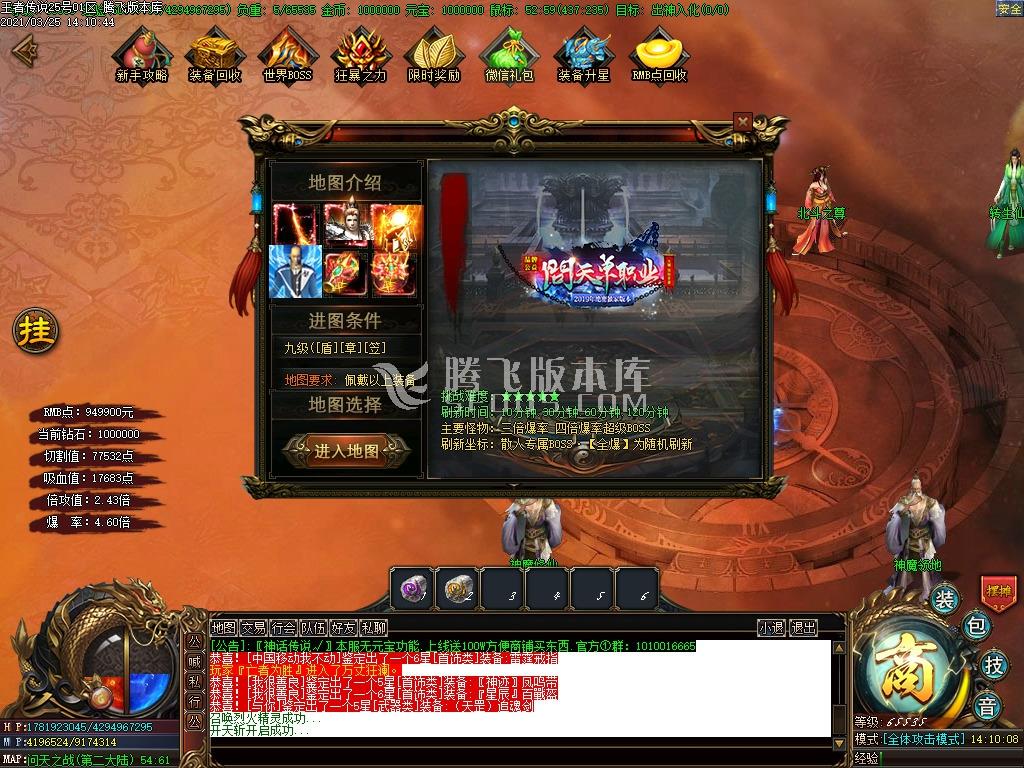 超级无敌爆的好 刷新地图:富豪捐献1-3名地图 刷新时间捐献NPC有写 爆本服所有终极!