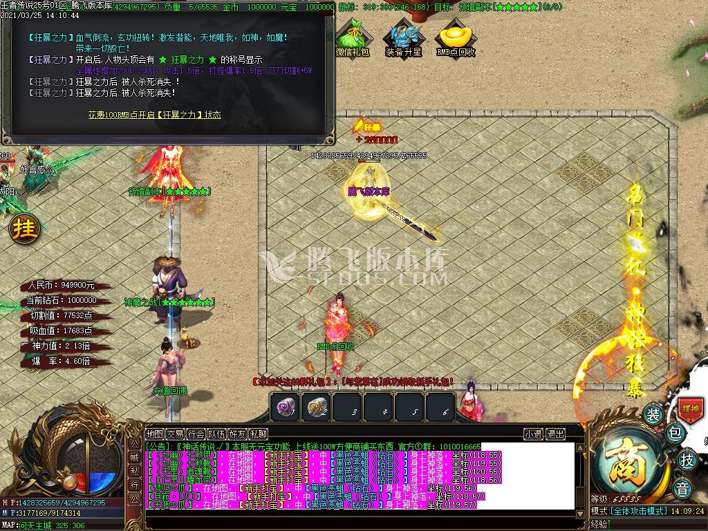 本服开区3小时.系统开启终极地图免费进.请玩家一定不要错误.里面装备狂暴.