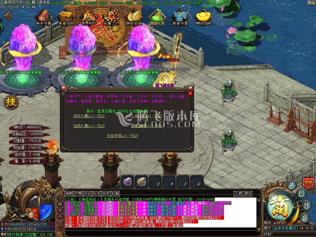 3月王者传说新版神器激情单职业-带假人-带光柱-带攻略-沙城捐献-自动回收-