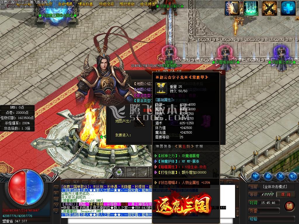 常胜将军☆赵雲〖时装〗需要: 2000000点券 (所需材料自行查看) 几率切割怪物4000万血量 (有专属技能)(有专属地图)
