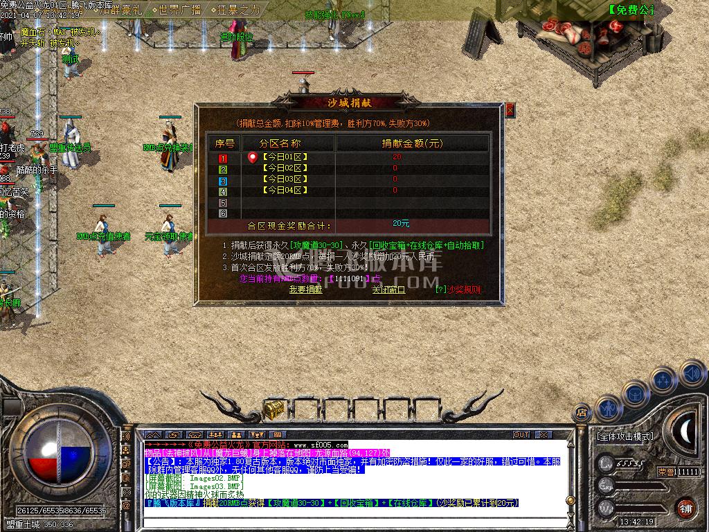 【游戏介绍】第2天合区第三天20:00拿沙,沙城捐献(保底1888无上限) 老区拿沙天天!!