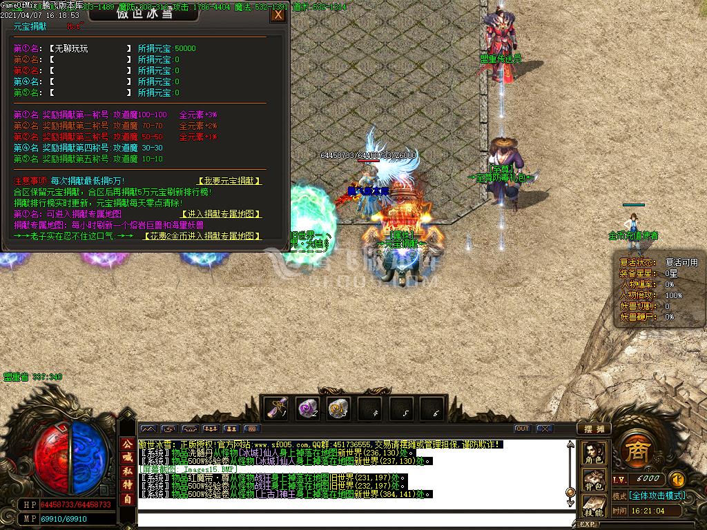 4月天魔冰雪22米攻速单职业-带假人光柱-沙城捐献-自动回收-RMB-挂机助手