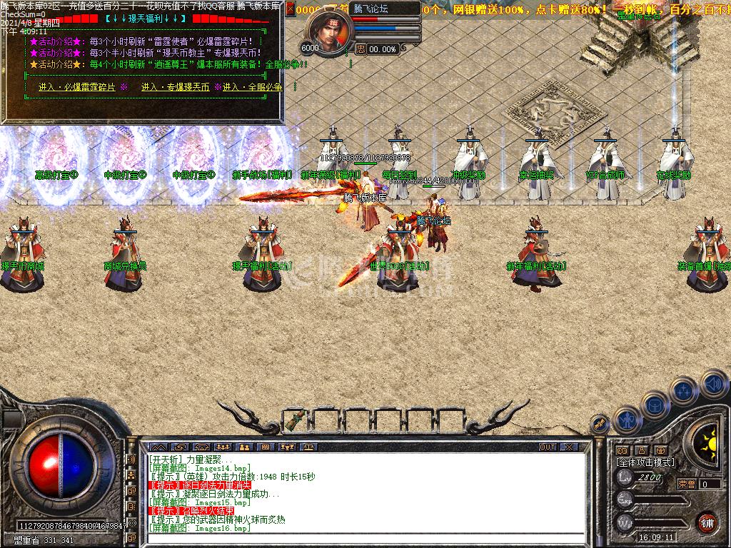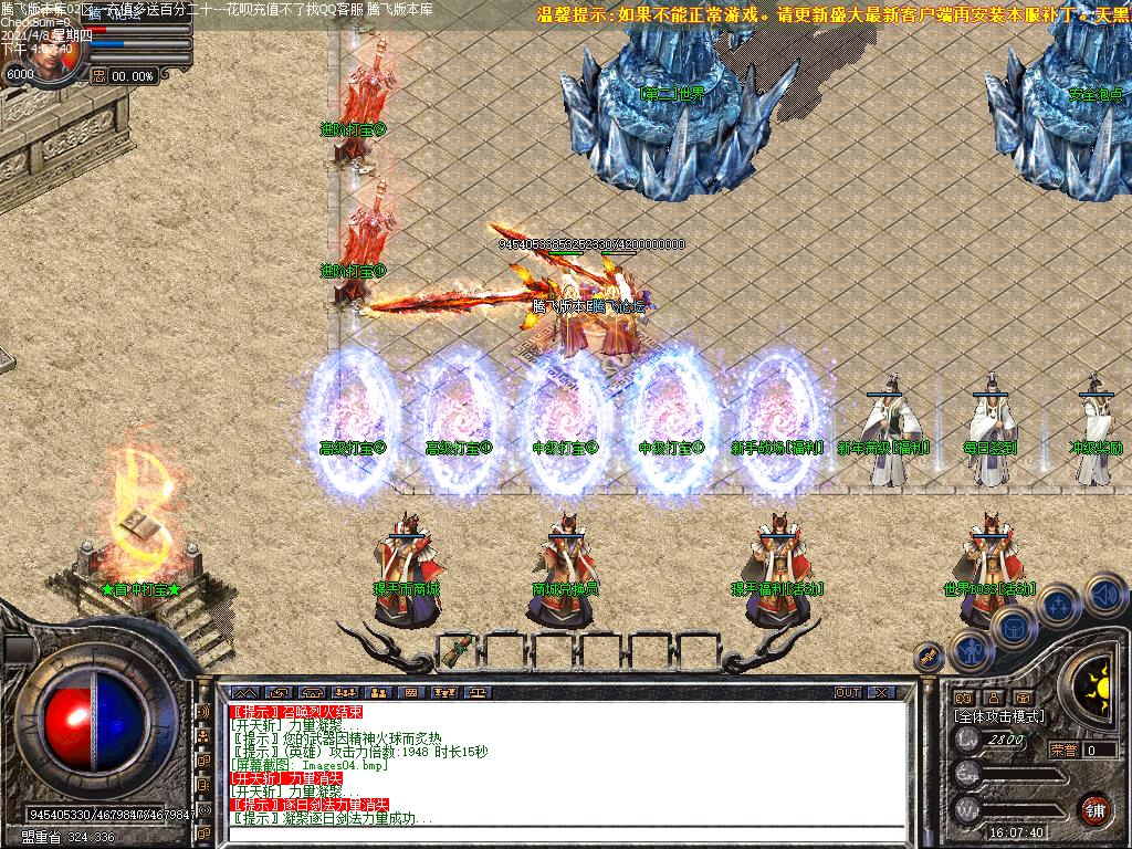 测试区泡到500级开区可以领取元宝+灵符+金刚石