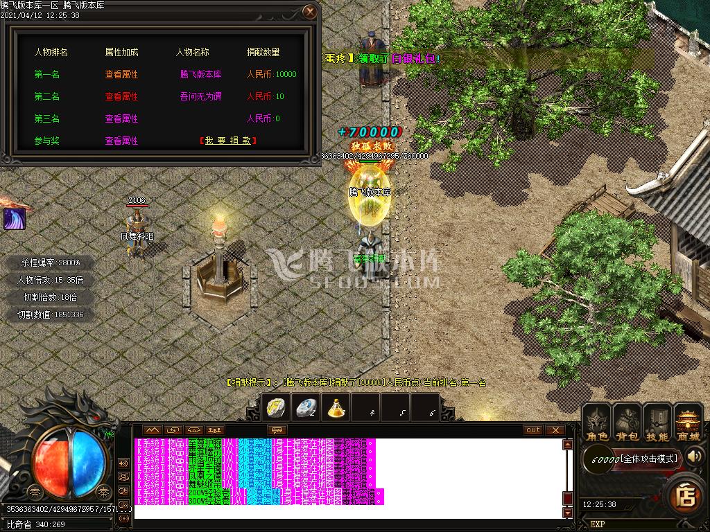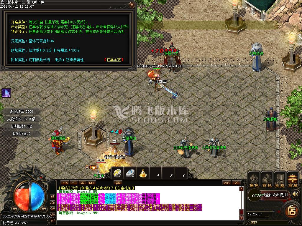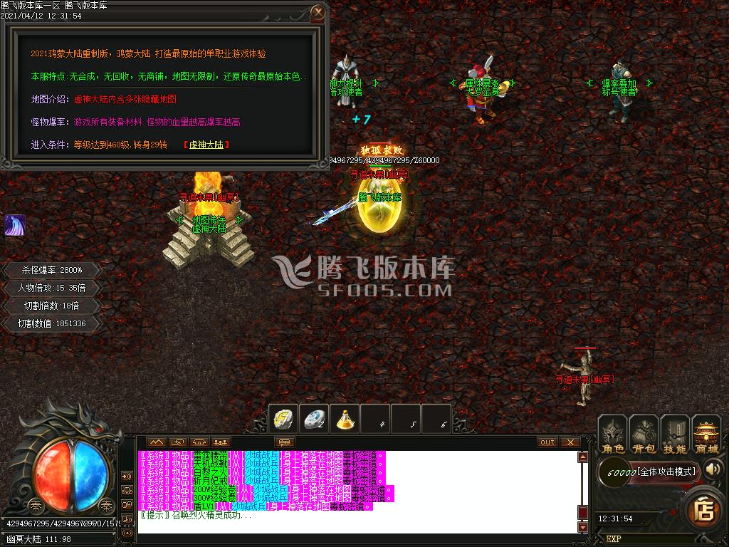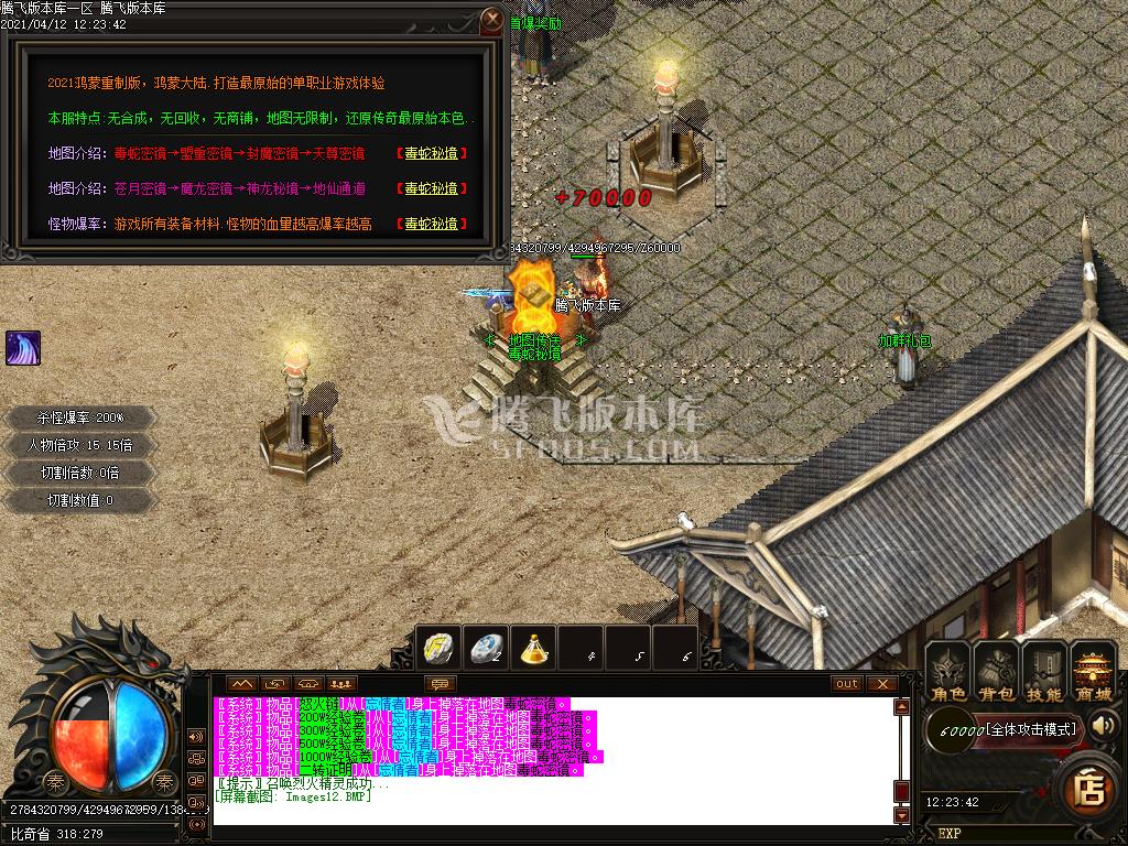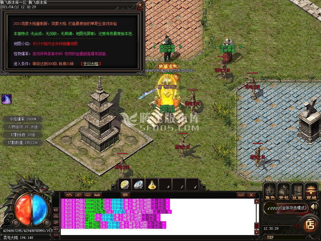 1月鸿蒙苍天破复古单职业传-带假人-带光柱-沙城捐献-BUFF洗练-限时奖励-镇妖塔