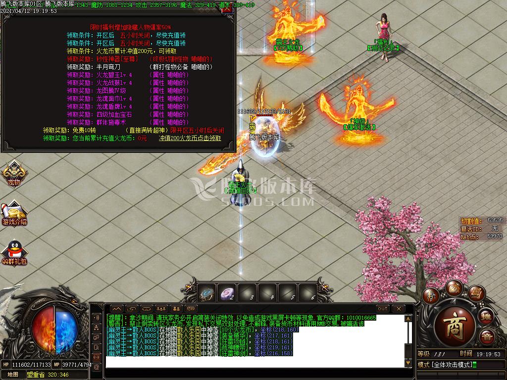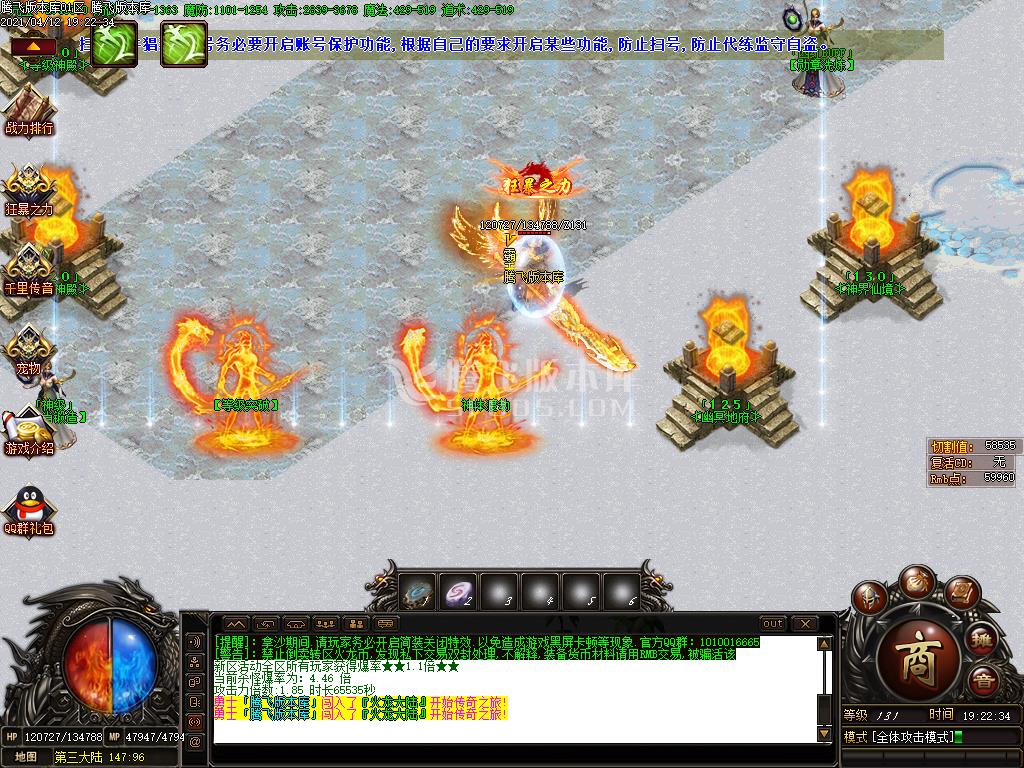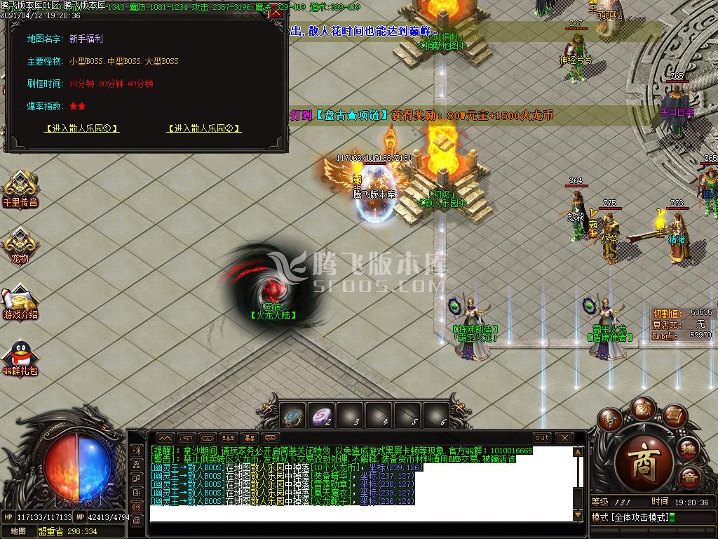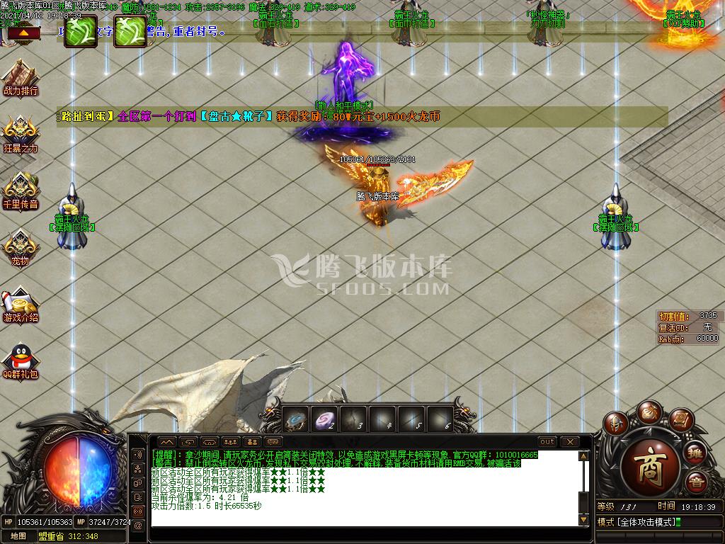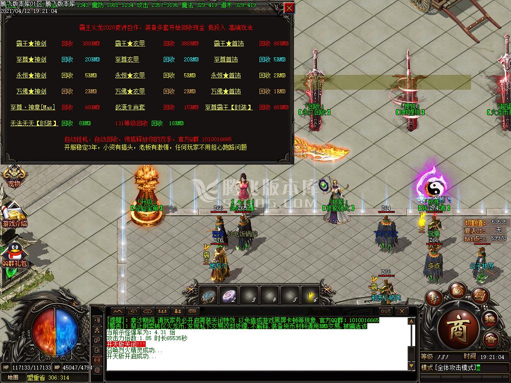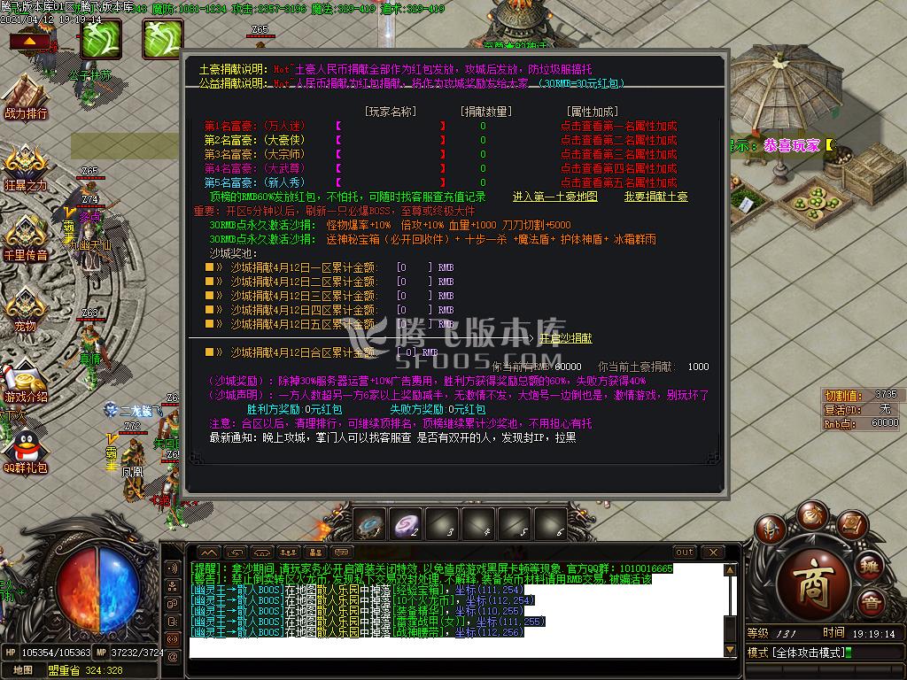 4月1.80天下火龙激情三职业-带假人带光柱-沙城捐献-赞助大使-RMB-终极回收