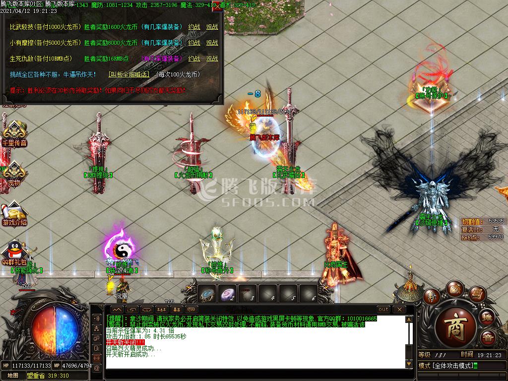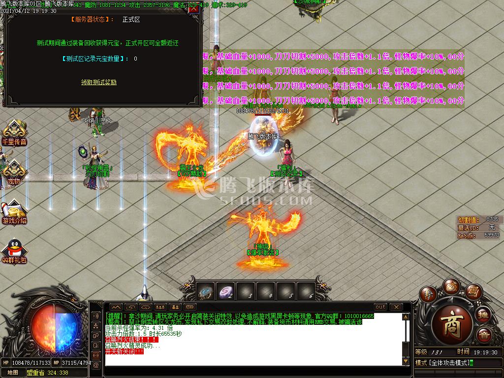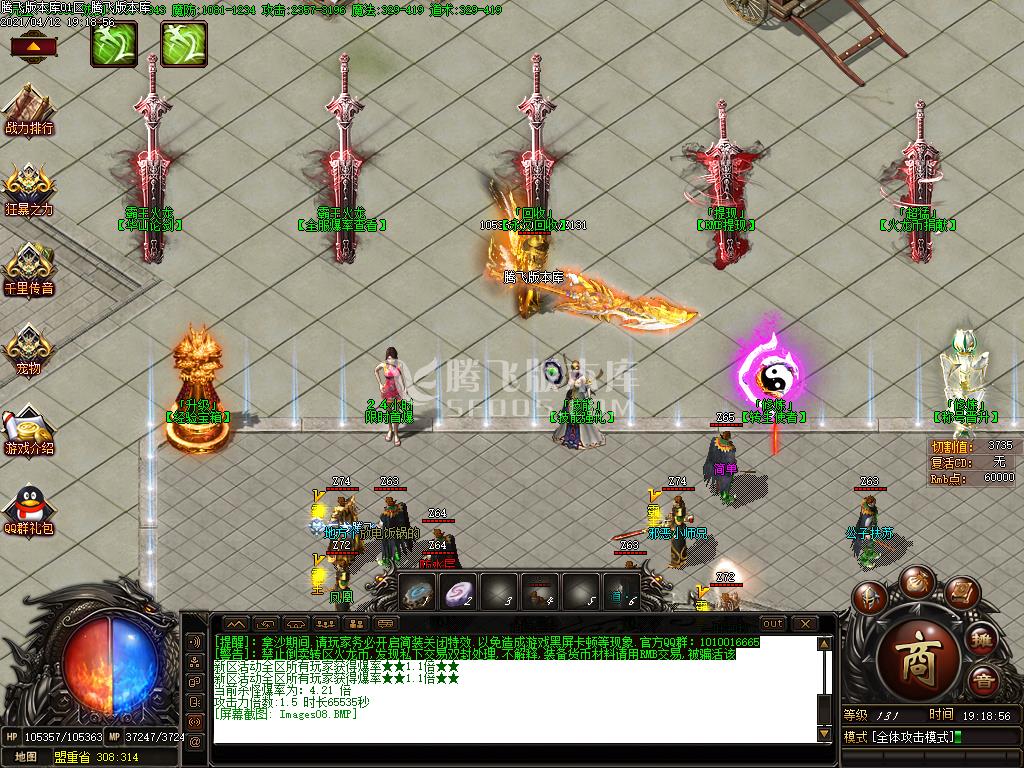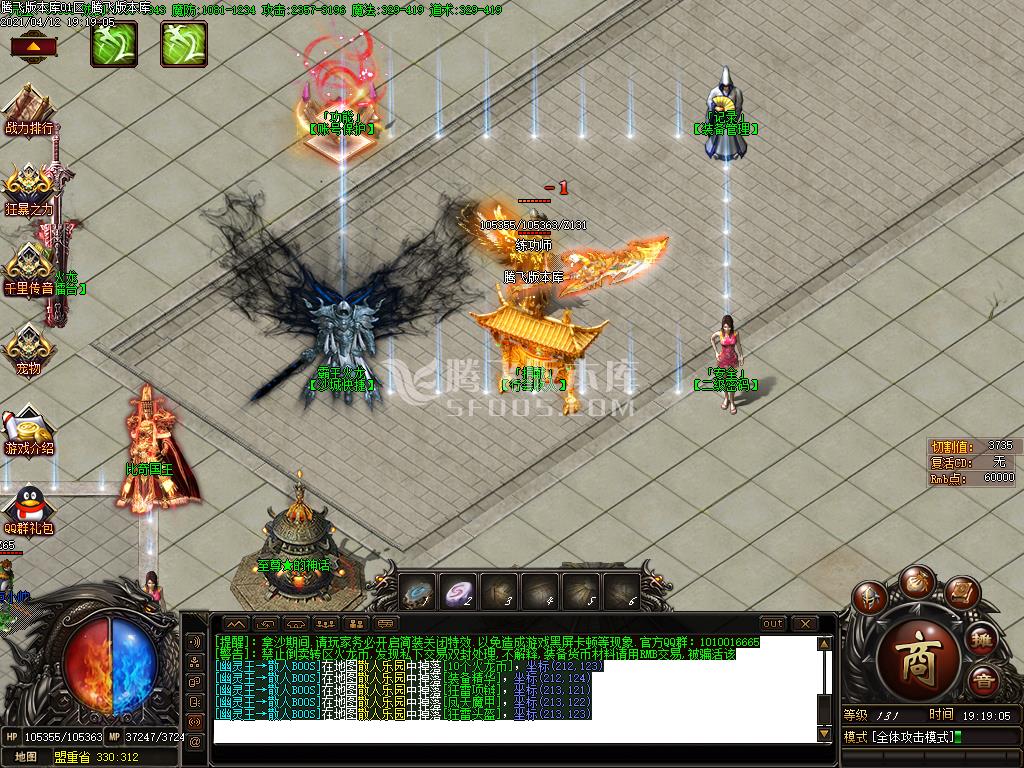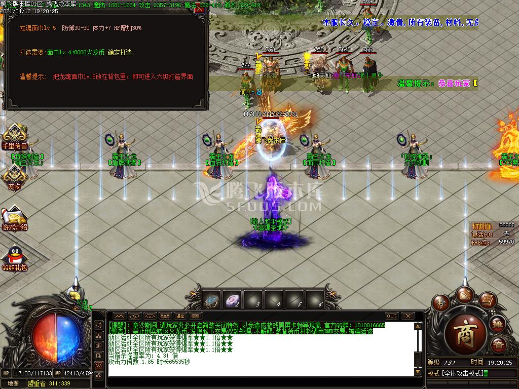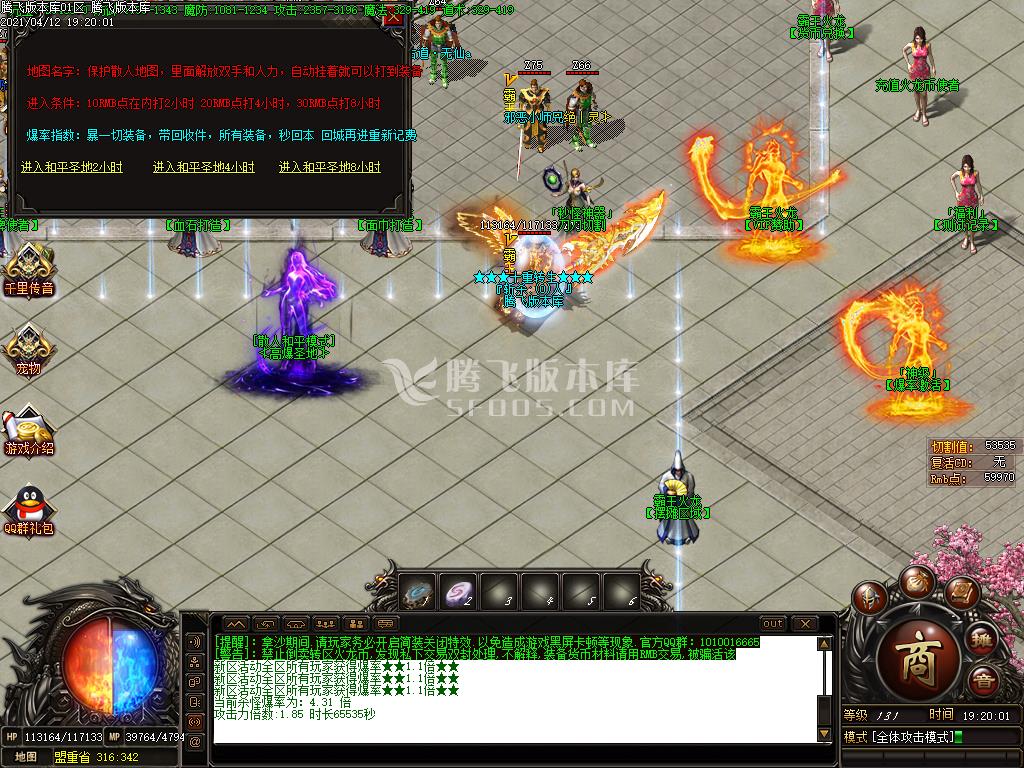 4月1.80天下火龙激情三职业-带假人带光柱-沙城捐献-赞助大使-RMB-终极回收