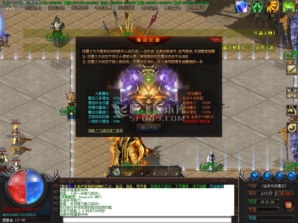 | 开启狂暴同样可以自动拾取,测试区建议开启狂暴
