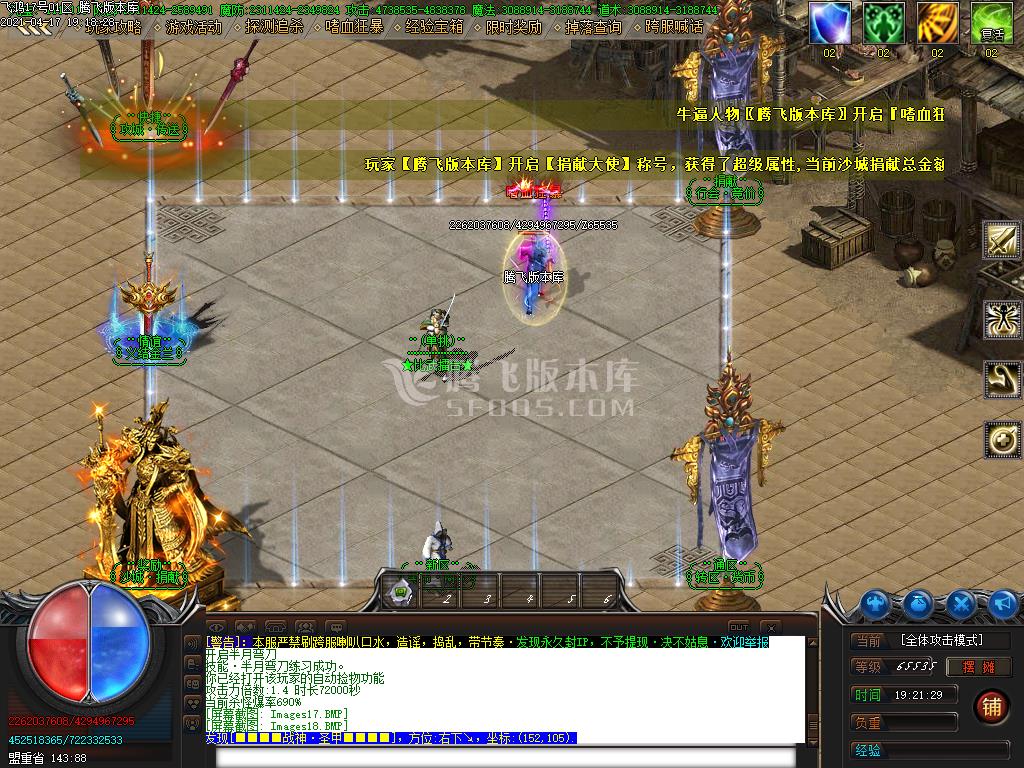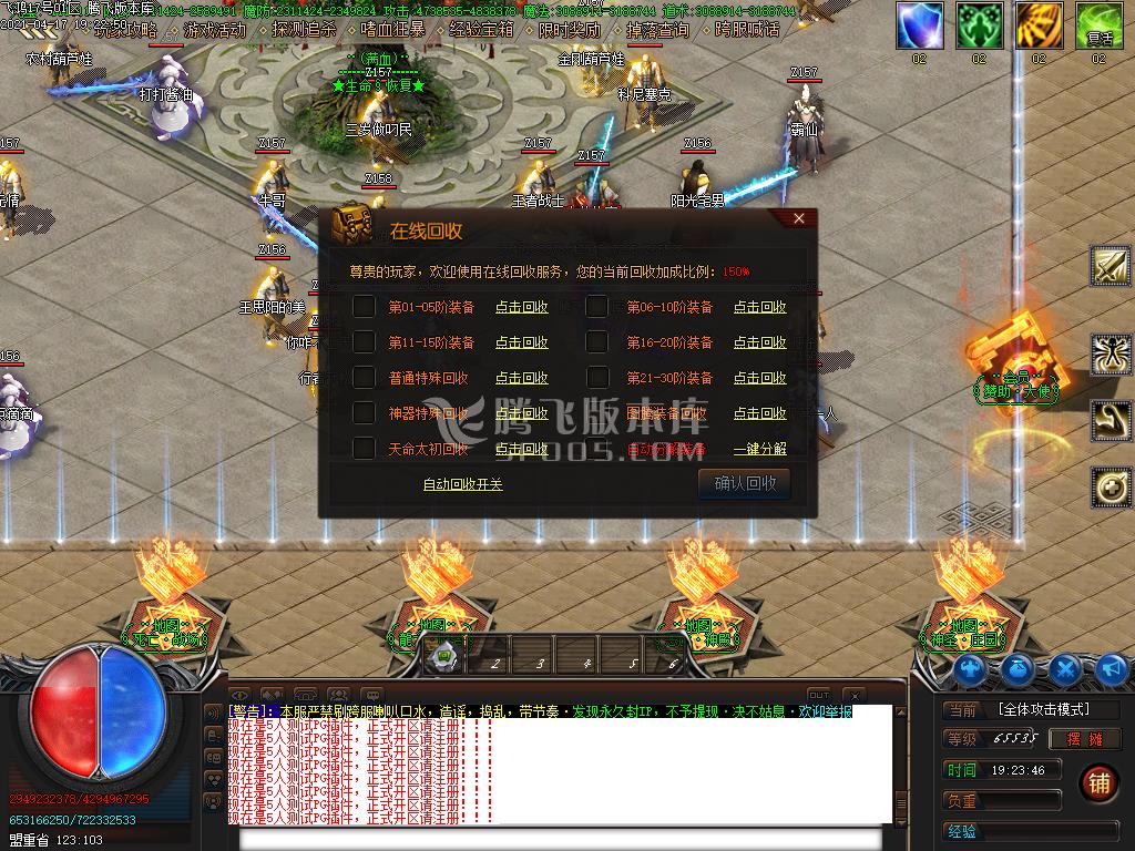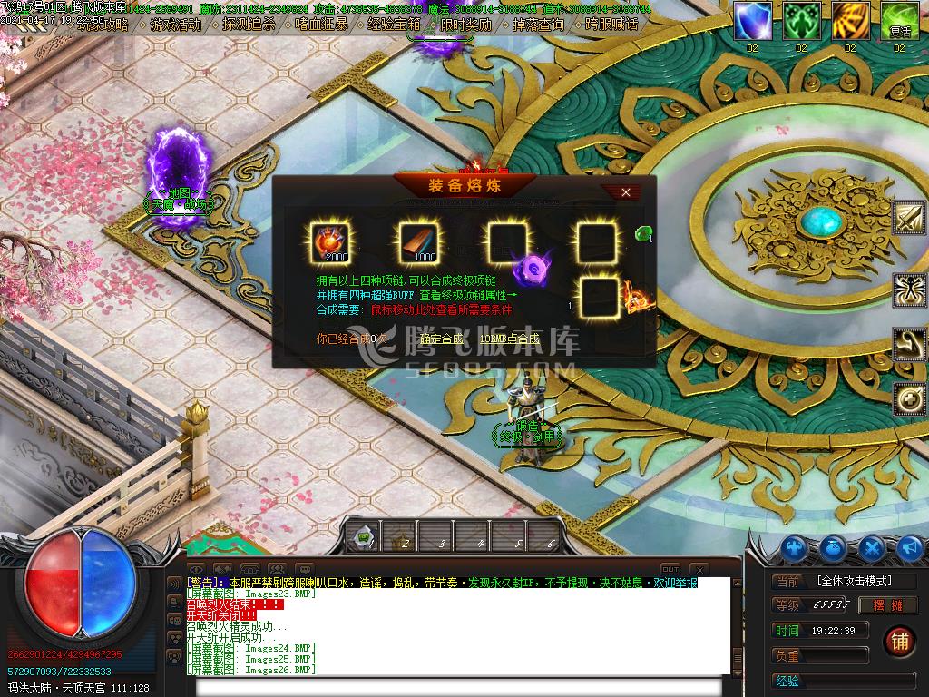 3月鑫城忘忧22米神器单职业传奇版本-带假人光柱-自动回收-沙城捐献-回收