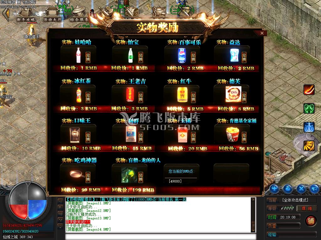 版本介绍:本服至尊会员(50元) 沙城捐献(30元) 狂暴之力(5元) 他必要的坑人消费 真公益