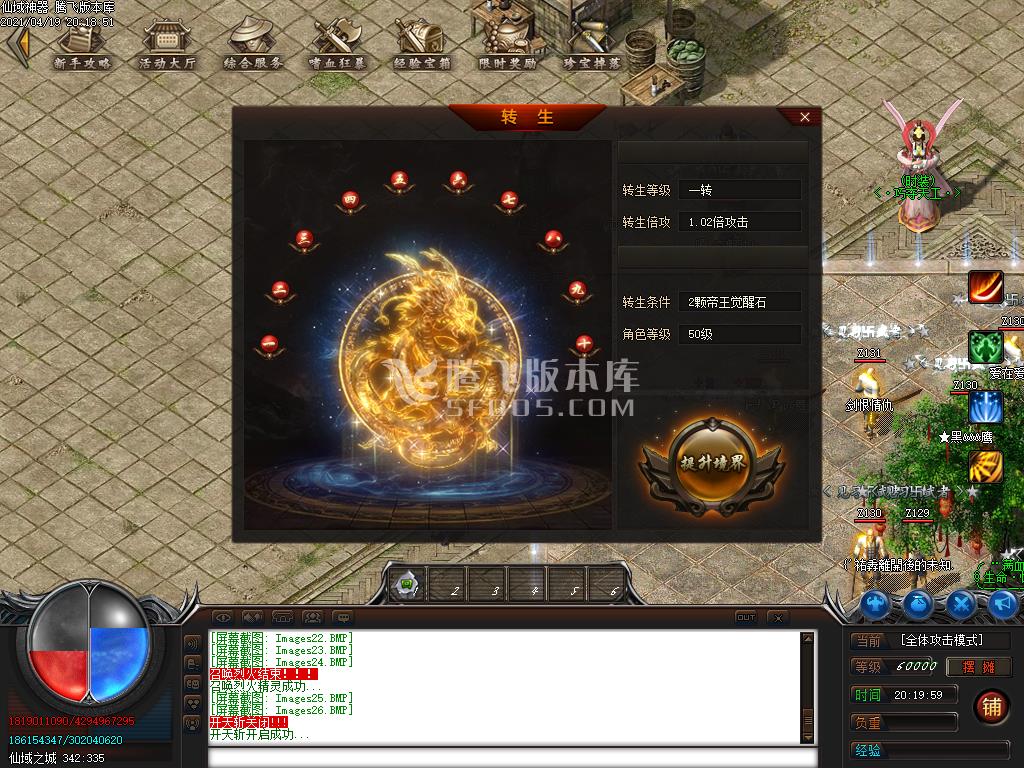 5月远古神话刑天三职业神器-带假人带光柱带攻略-沙捐-RMB回收-自动回收