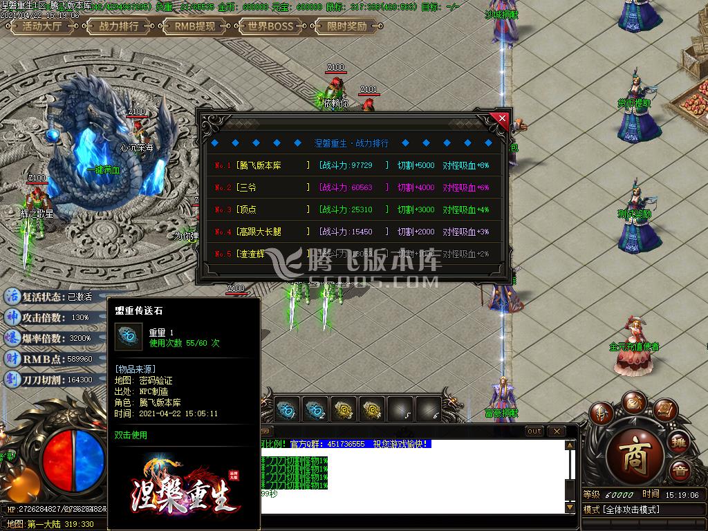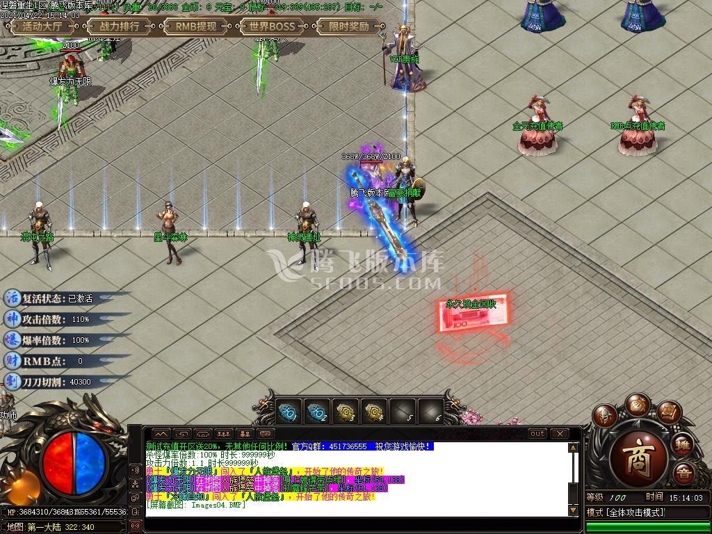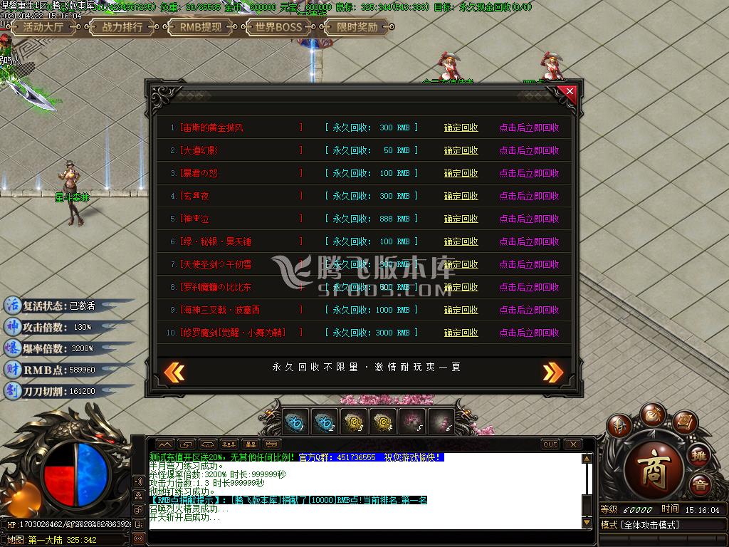 4月涅槃重生单职业-带光柱带假人-沙城捐献-自动回收-永久现金回收-富豪捐献