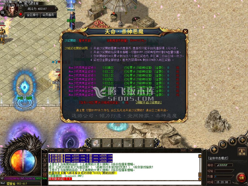 4月嗜血战天杀神恶魔单职业-带假人-光柱-战力排行-沙城捐献