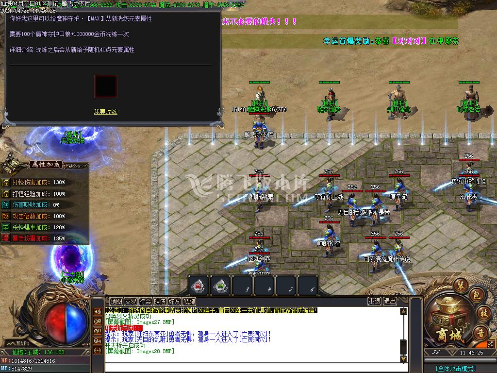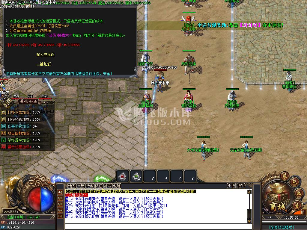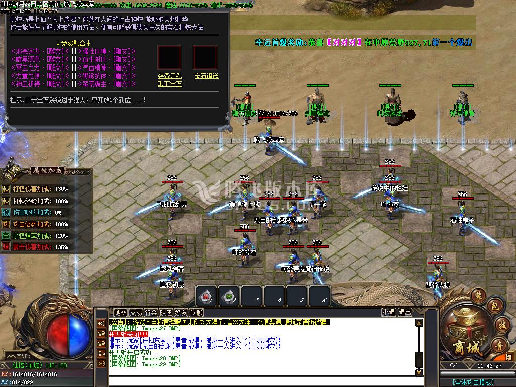 运气好的玩家如果出了金箍棒 或 灭魂剑 那属性都会大大的提升 灭魂剑 有对怪每刀15555的真实伤害