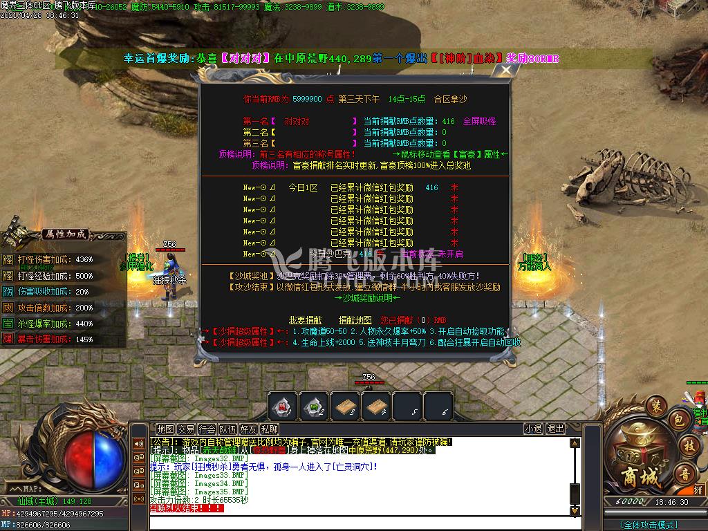 7月逆天行单职业-带假人-带光柱-沙城捐献-元素转移-觉醒系统-转区介绍-rmb