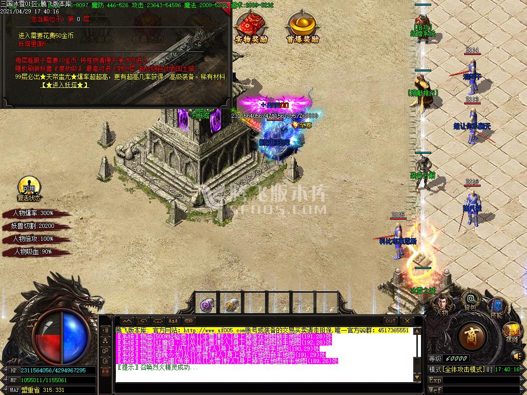5月独家天涯火龙三职业-带假人带光柱-沙城捐献-太乙真人-RMB--官位系统