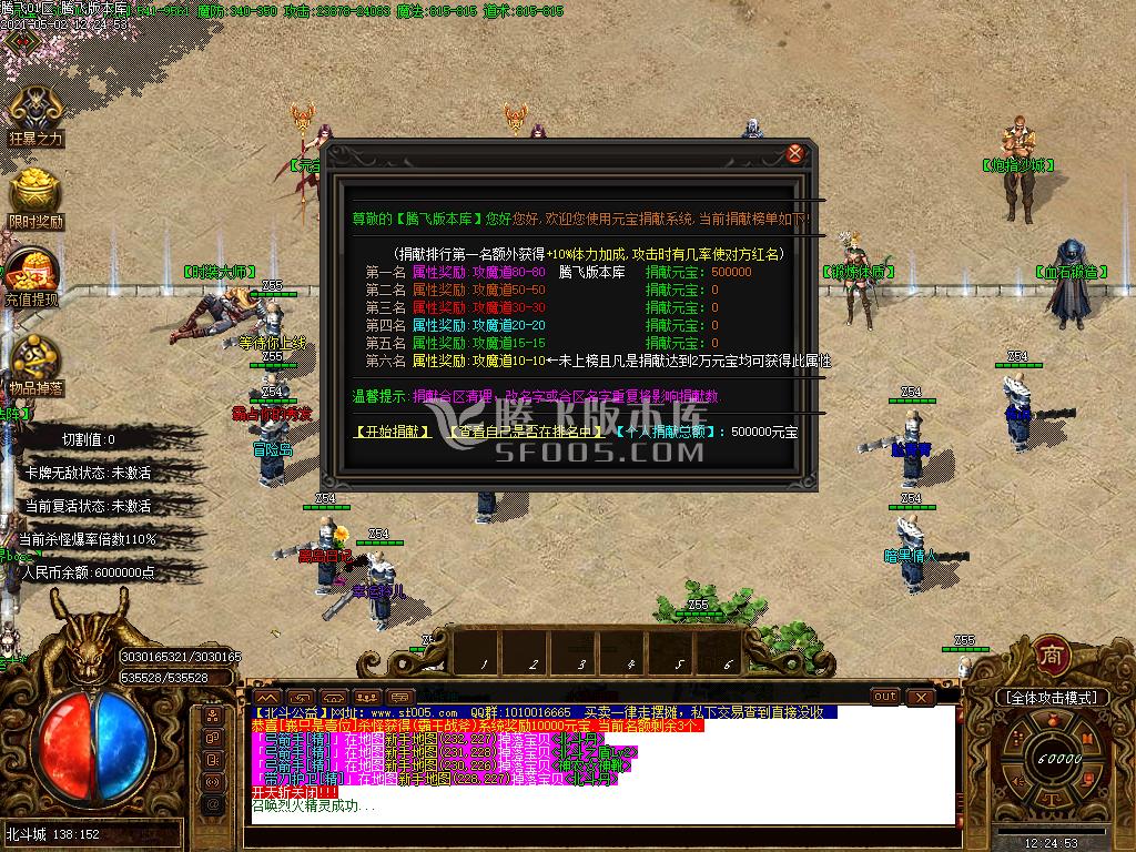 11月1.80免费火龙公益版微变三职业-带假人-带光柱-沙城捐献-自助-今日土豪