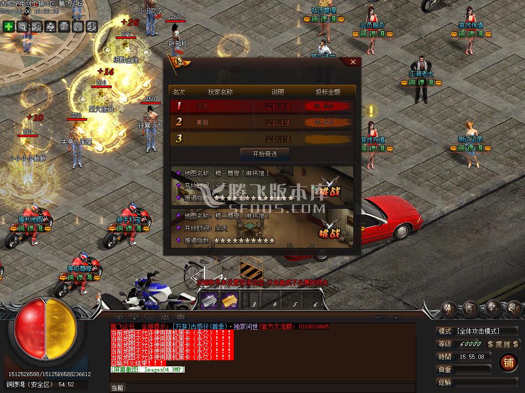游戏活动在开区两小时后自动开启,系统给予各大玩家弹窗和滚动公告提示进入,进入活动地图后各大玩家击杀擂台中的(拳王)怪物,此