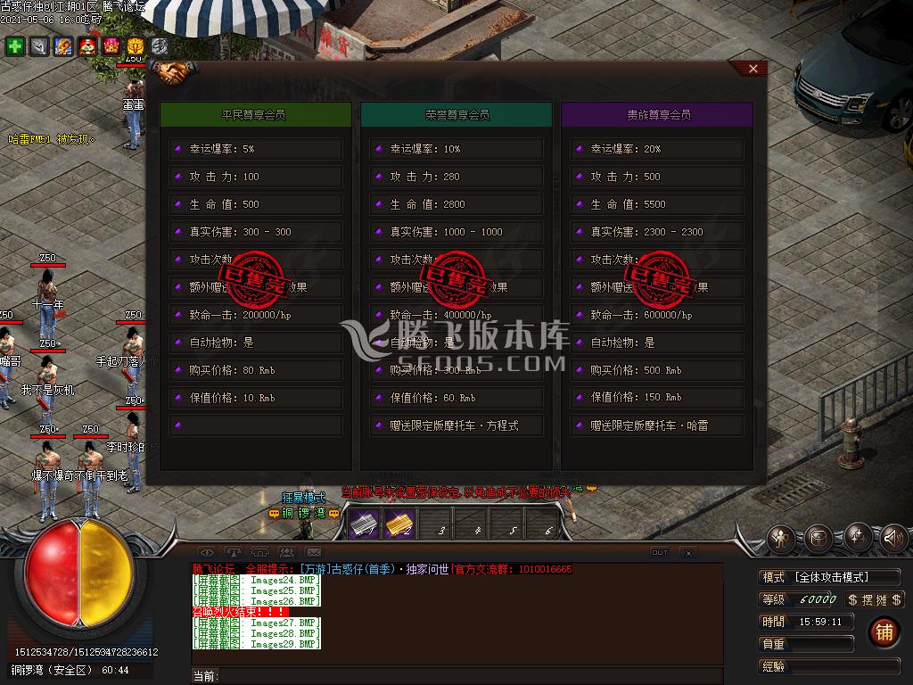 贵族充值 880rmb 永久保值150rmb 8级回血效果 一定几率斩杀60W血量 1个专属地图