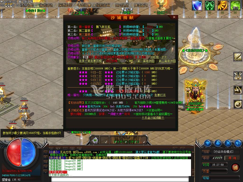 1、本服42全满 沙城捐献20 赞助礼包20 狂暴2 再无**任何消费