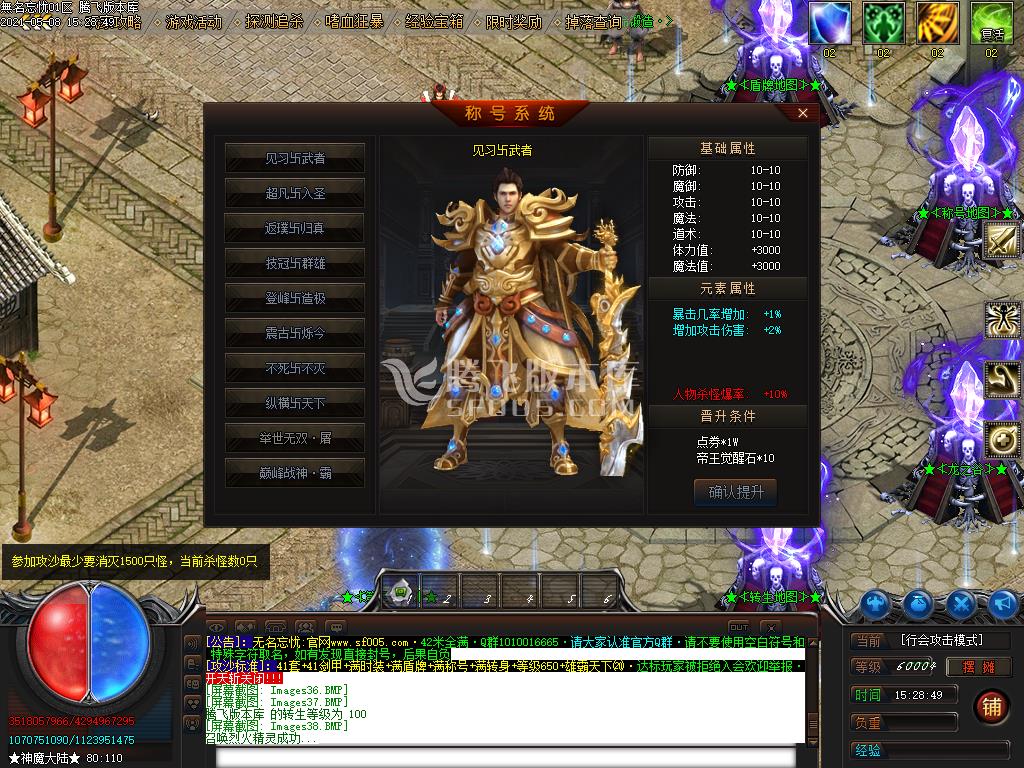 1、称号越高,爆率越高。(需要点券、木头、武林证明)
