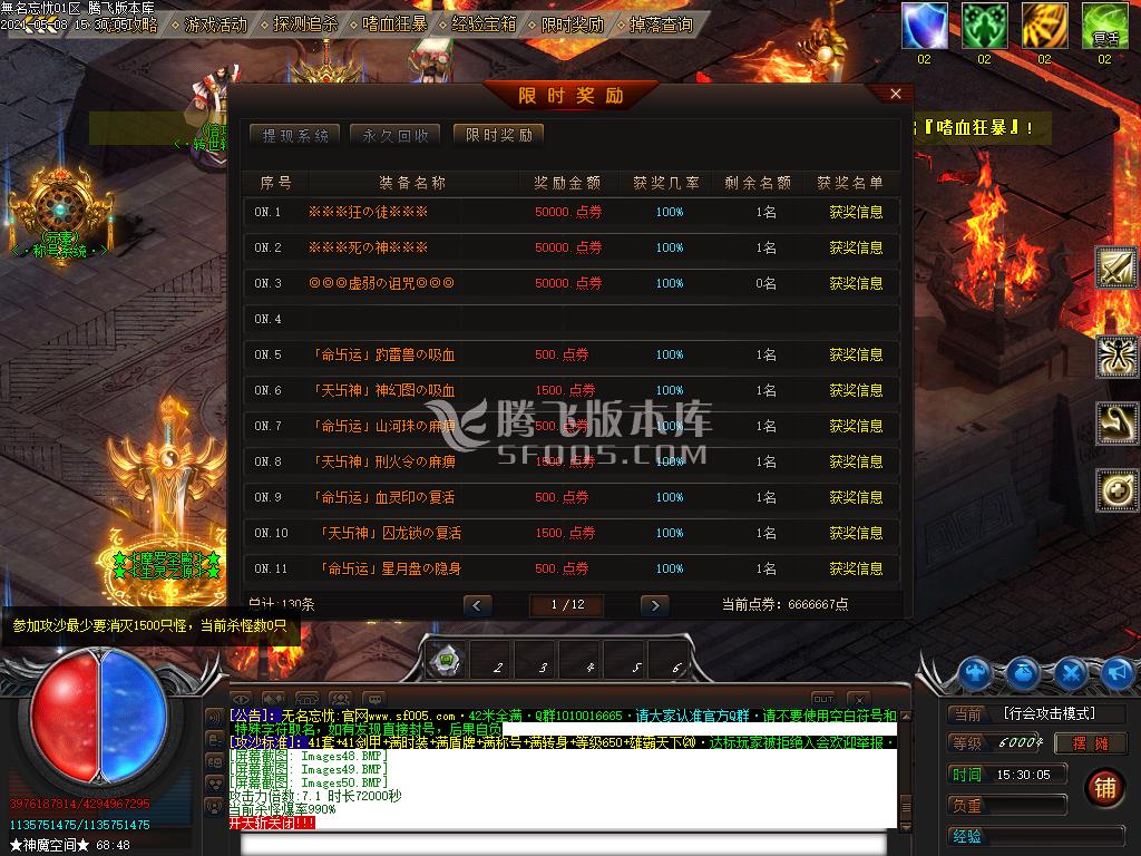 3、本服满级650. 富豪123名增加等级321 终极项链+1