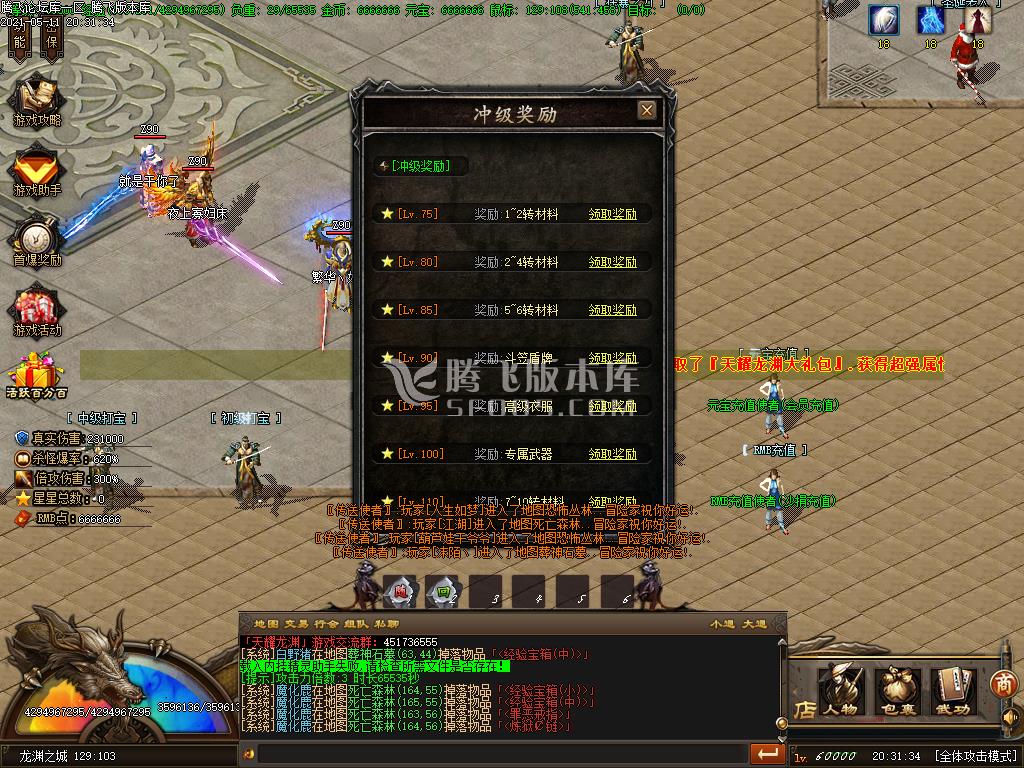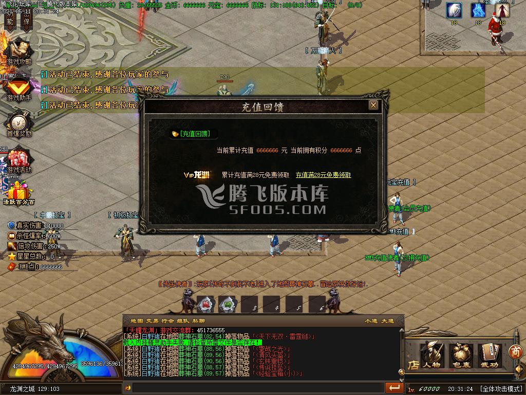 100元档:700R沙娟狂暴满赞礼包+888R次勋章+500R上古威能+888R终极爆率