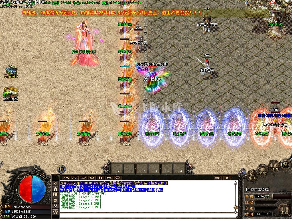 【元宝比例①】: 1:2000 网银送100%,点卡送80%!!2020-09-21【游戏介绍②】: 每区怪物爆率递增,晚进游戏同样有优势2020-09-21【游戏介绍③】: 道士48级召唤2只白虎.52级召唤2只白虎王2020-09-21【游戏介绍④】: 战士PK猛,法师团战及刷金快,道士为打BOSS必需2020-09-21【游戏介绍⑤】: 全天24小时活动不断,必爆各种物品,大量元宝2020-09-21【游戏介绍⑥】: 装备-材料-账号永久保值,散人日赚200+2020-09-21【游戏介绍⑦】: 第2天合区-攻沙,奖励沙城捐献+200W元宝2020-09-21【游戏介绍⑧】: 充值1:1金币,1:1金币,秒到账2020-09-21