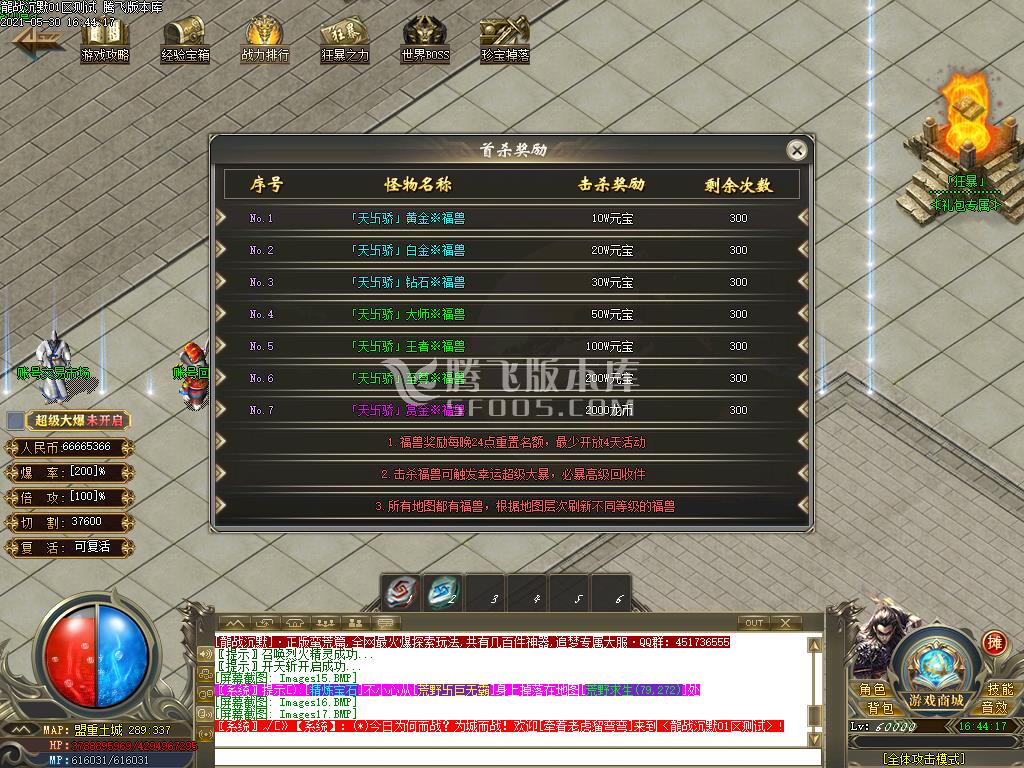游戏内的福利怪同样各大地图一小时一刷 打死获得大量游戏货币