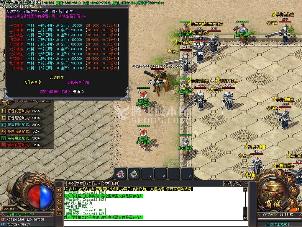 巅峰战神 人物杀怪爆率 +120% 晋升条件 1500W元宝 +20000点券