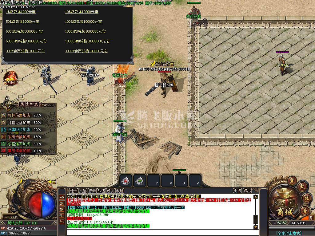 充值300RMB点(赠送鞭尸功能)购买赞助,剩余点卷可以合成一个满级切割,可快速打怪!