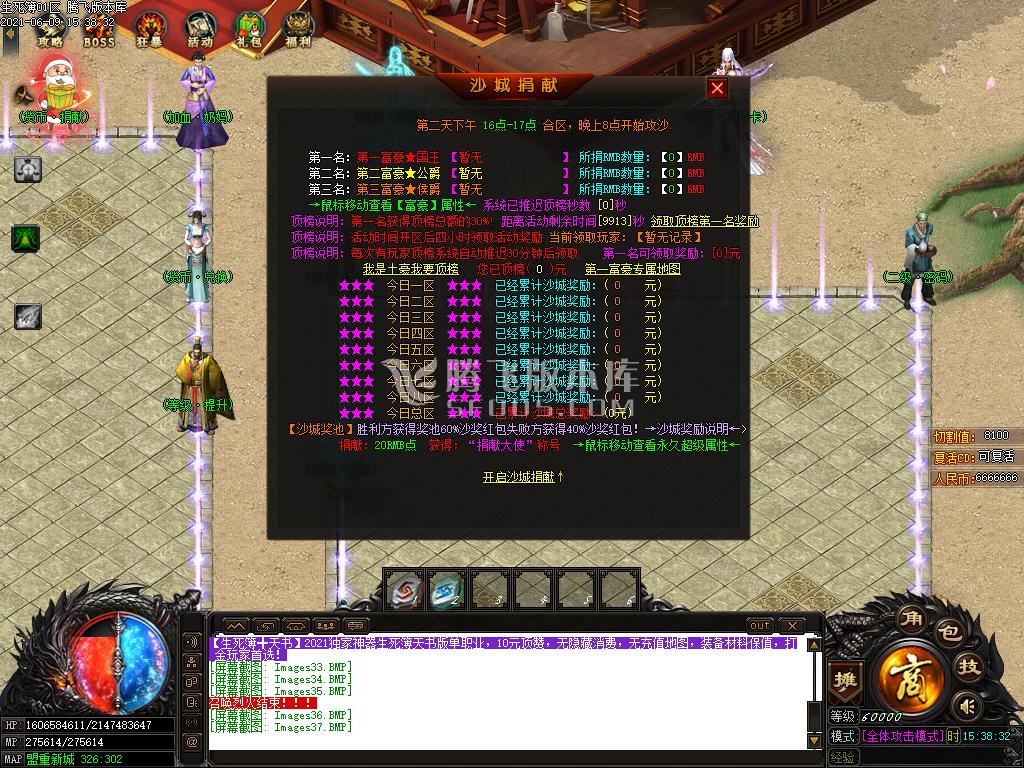 【关于拿沙】:第2天合区晚上拿沙,沙奖励30万沉默币+沙捐百分之60老区拿沙参考比奇国王NPC