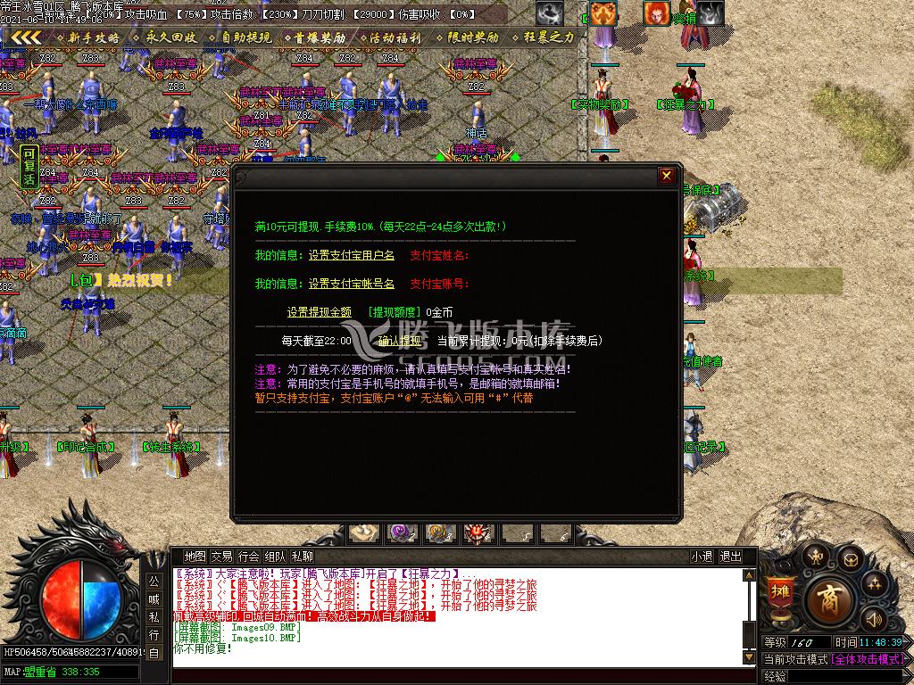 5月独家无双冰雪 单职业开区版本-带假人带光柱-沙城捐献-永久回收-现金