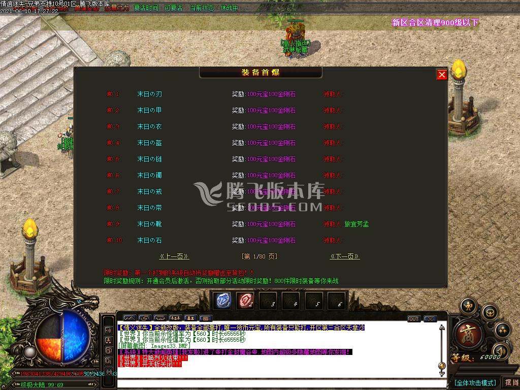 <><本服开区后第二天下午四点合区,第三天拿沙!奖励大量金刚石元宝,玩家可以放心发展。/FCOLOR=70>\