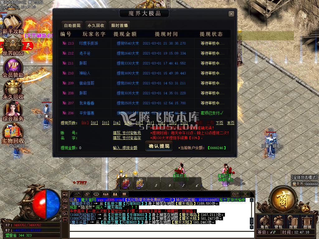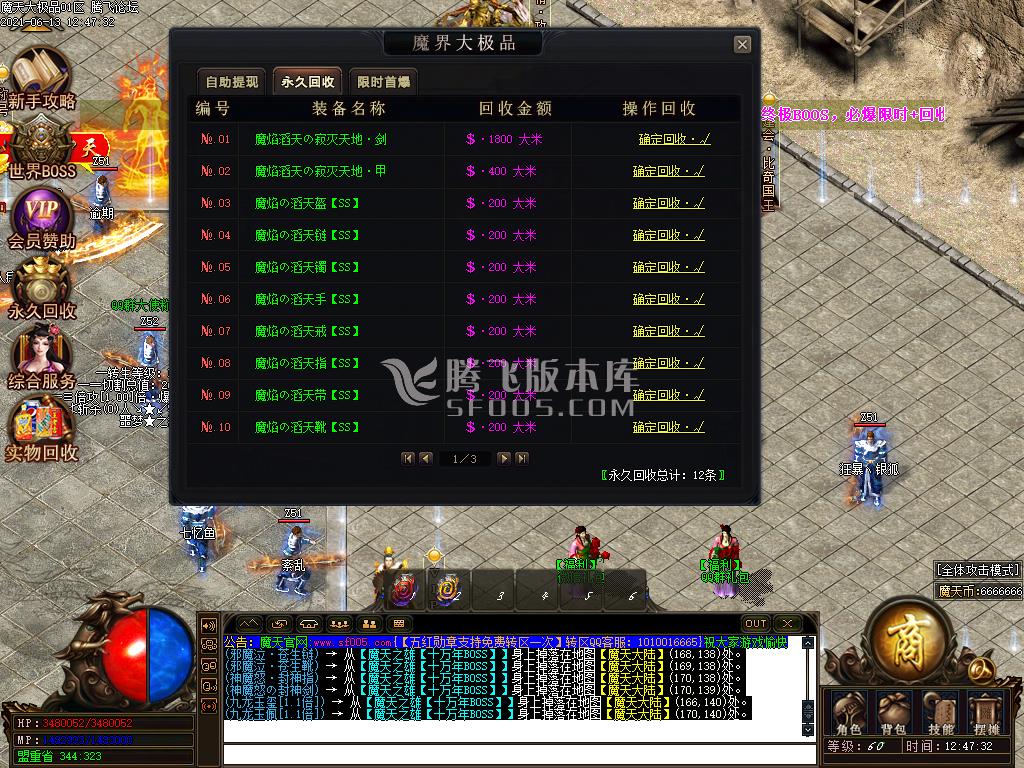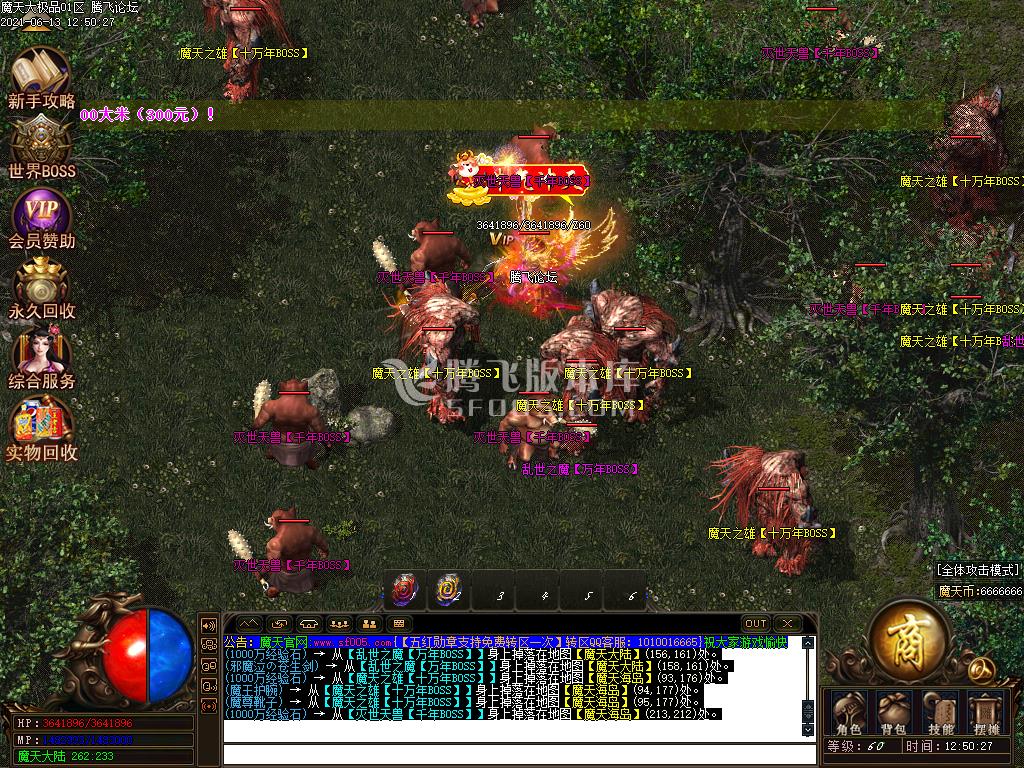 ★★福利★★每个新区开区三十分钟 三大陆魔天界 必爆终极BOOS一只 必爆首爆+3000大米(300元)终极装备一个