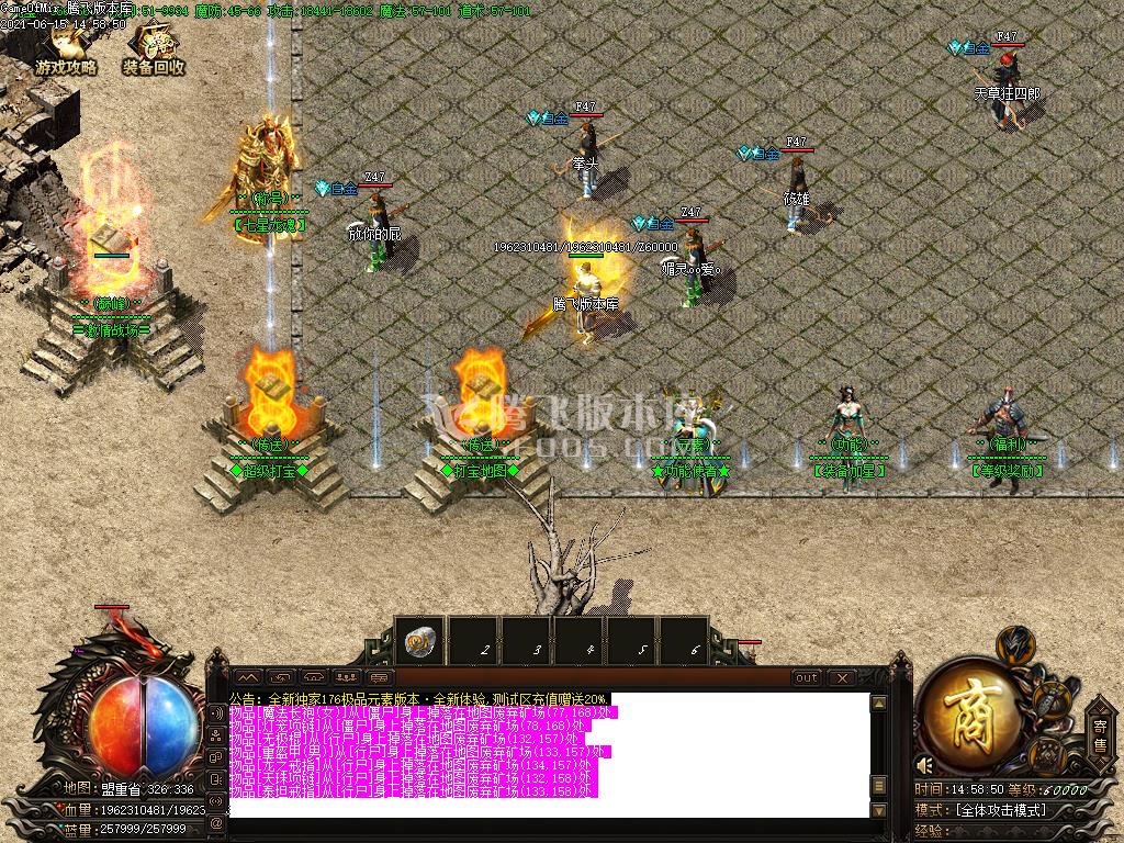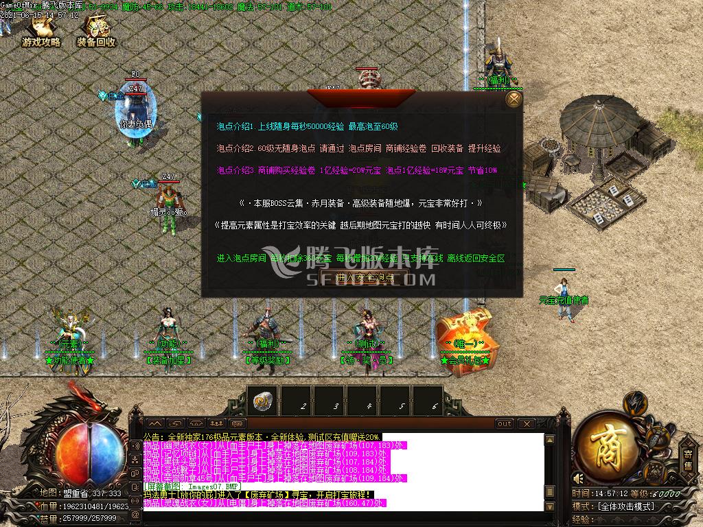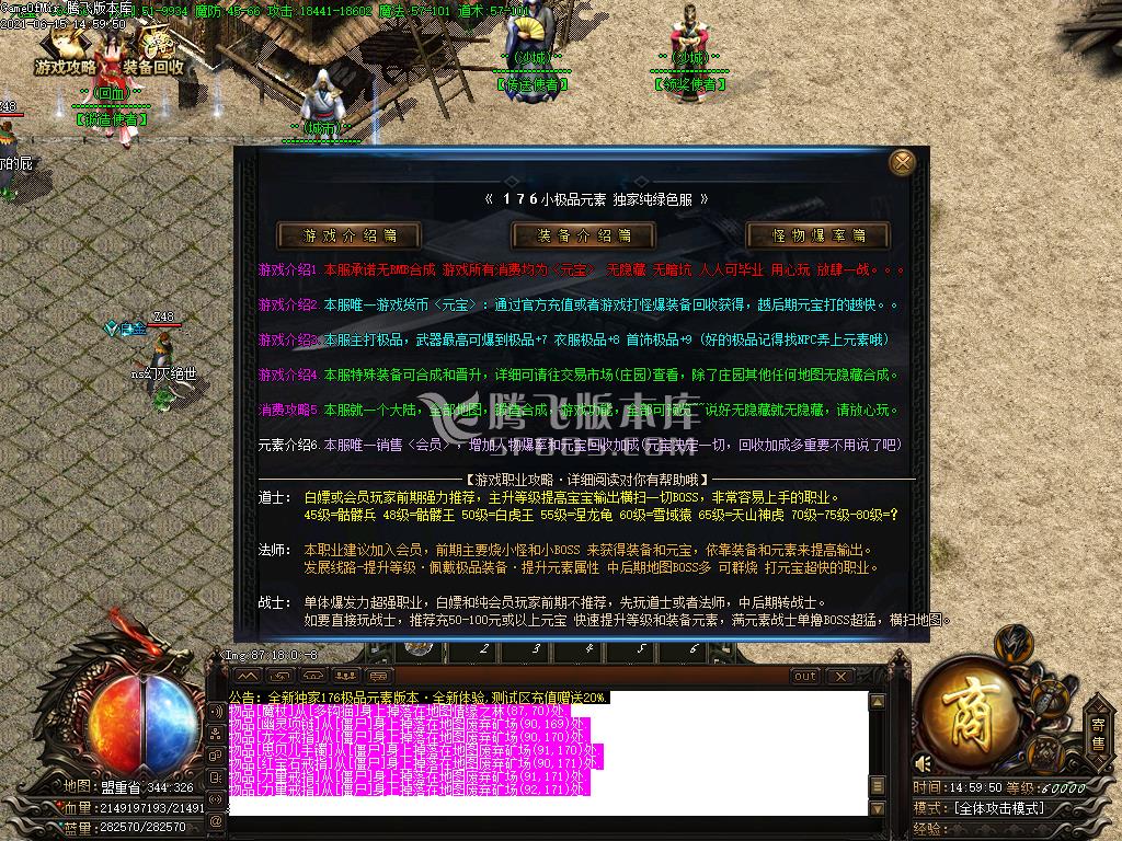 <> < 《 装备爆率高 就看爆的是不是极品 全看脸 高级装备爆率中等 爆不到极品也可鉴定极品 多样玩法 》/SCOLOR=249>\ \