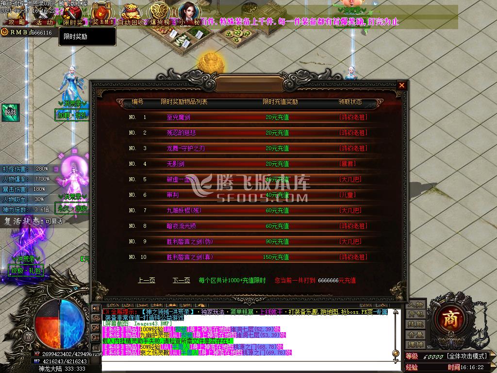 6月神之灵域洪荒录单职业-带假人光柱-带攻略-自动回收-沙捐-首爆奖励