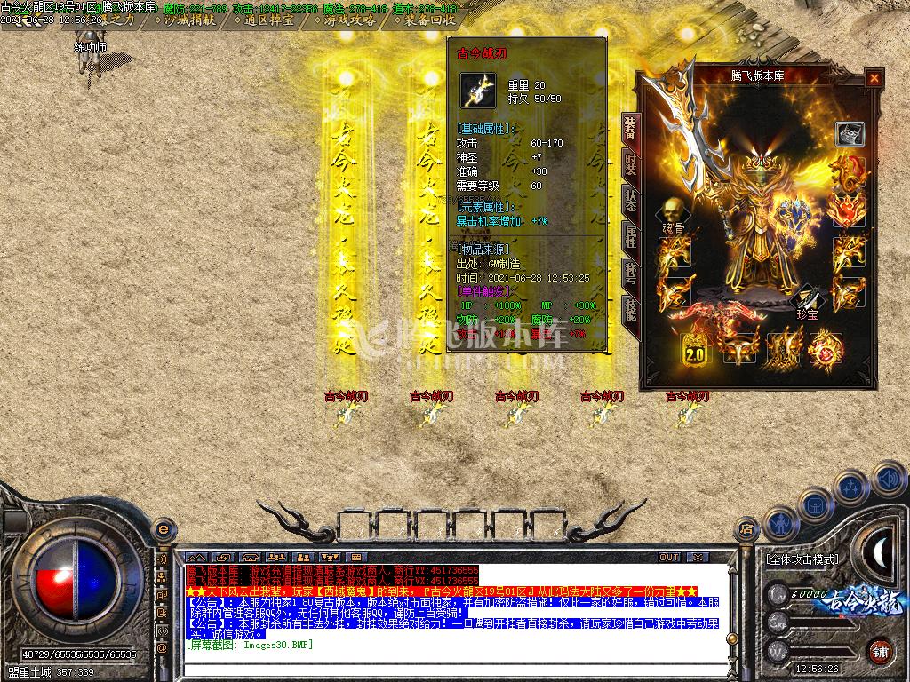 7月独家剑来火龙三职业10倍爆率上岛版-带假人-带光柱-带攻略-沙城捐献-