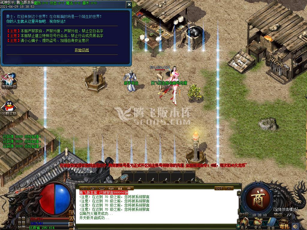 7月独家天下火龙上岛三职业开区版-带假人-带光柱-沙城捐献-太乙真人-擂台比武
