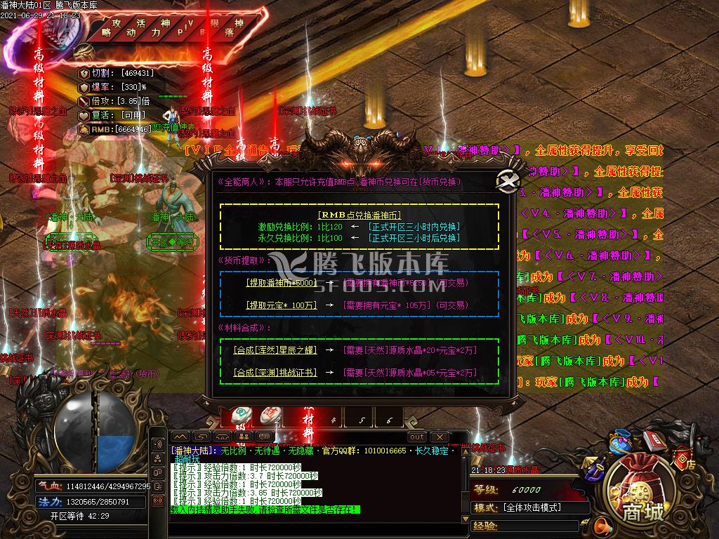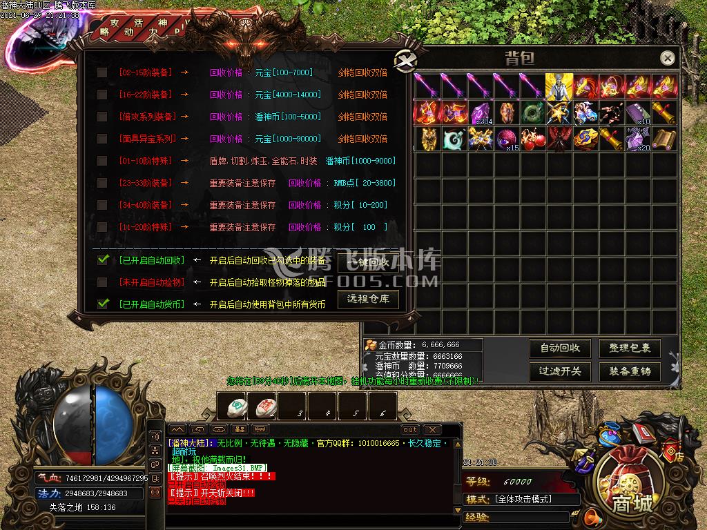 6月潘神大陆神器第四季激情单职业-带假人光柱-带攻略-大背包-自动回收-沙捐