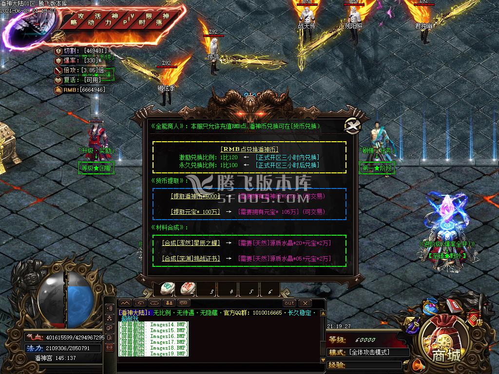 [货币兑换介绍]:><本服只允许充值RMB点,潘神币兑换可在 [货币兑换] 处购买/FCOLOR=242> <(本服永久RMB积分)