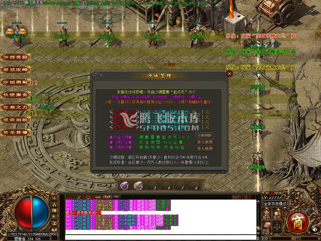 7月天启冰雪公益单职业-带假人-带光柱-沙城捐献-免费顶赞-免费神魔-自动回收