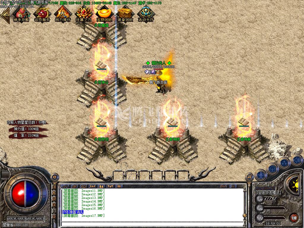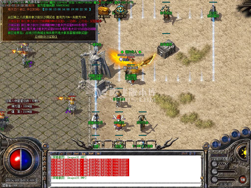 4.每天新区第二天激情拿沙刮分沙奖池胜70%失败方30% 沙城捐献管理扣40%其他全部拿来奖励每天晚上丰厚沙巴克奖励