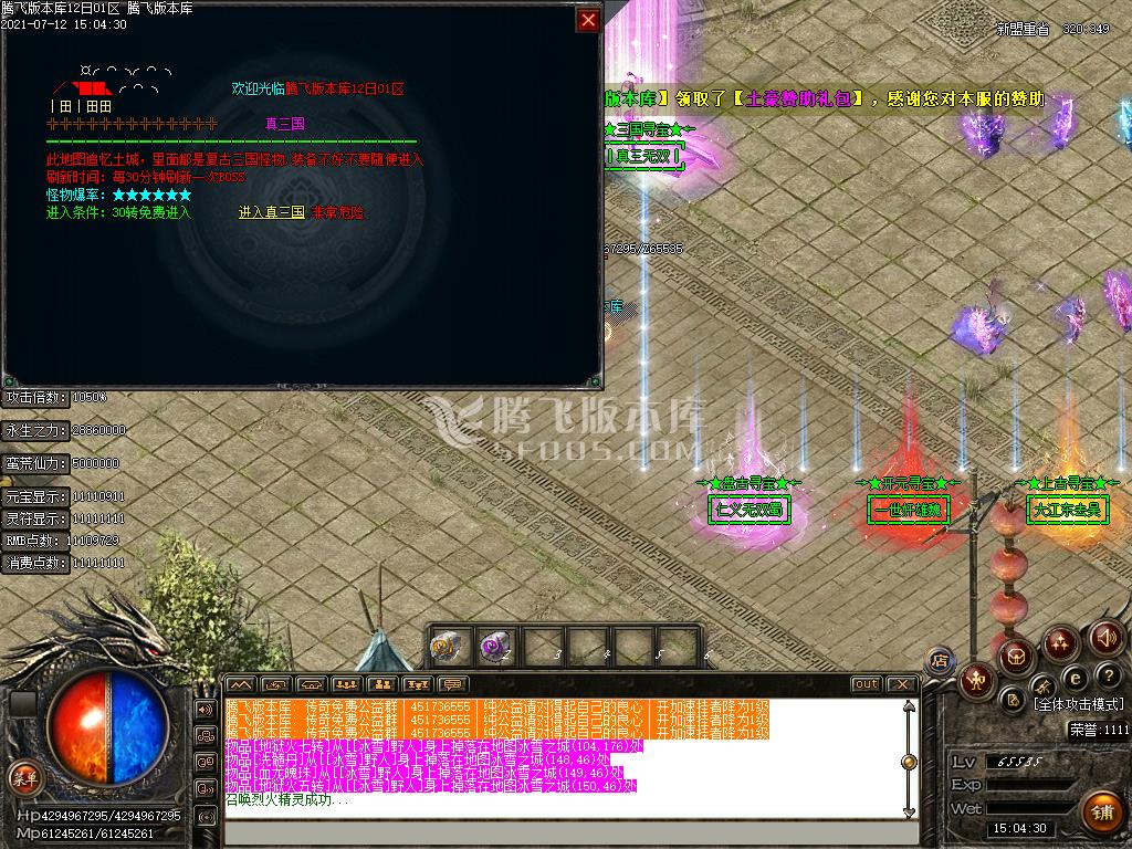 7月独家吉祥火龙三职业-带假人-带光柱-沙城捐献-自动回收-自动拾取-太乙真人