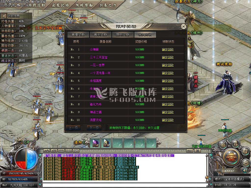 7月吞噬大陆剧情专属公益单职业传-带假人-带光柱-沙城捐献-自动回收-全屏吸怪