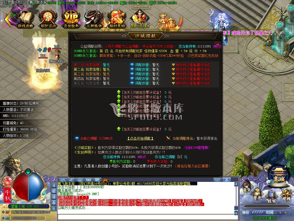 7月独家异幻灵境单职业专属大服-带假人-带光柱-大背包-沙城捐献-自动回收