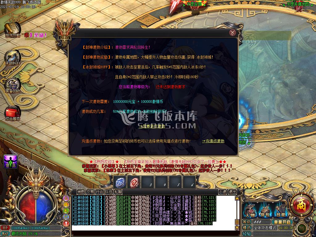 7月激情无敌9999大超变单职业-带假人-带光柱-带攻略-自动拾取-自动回收-限时