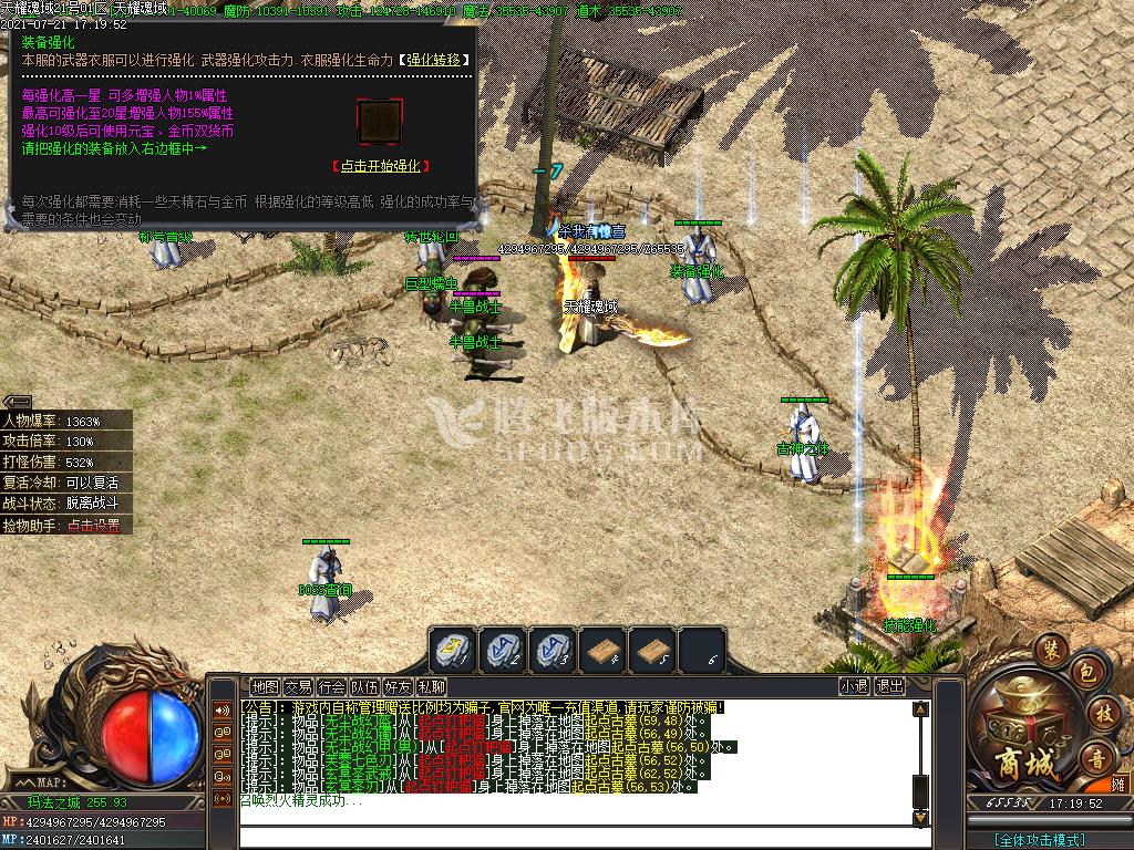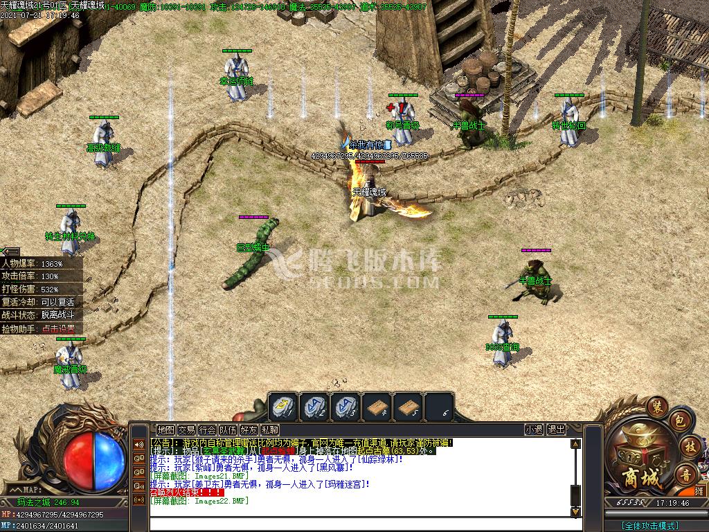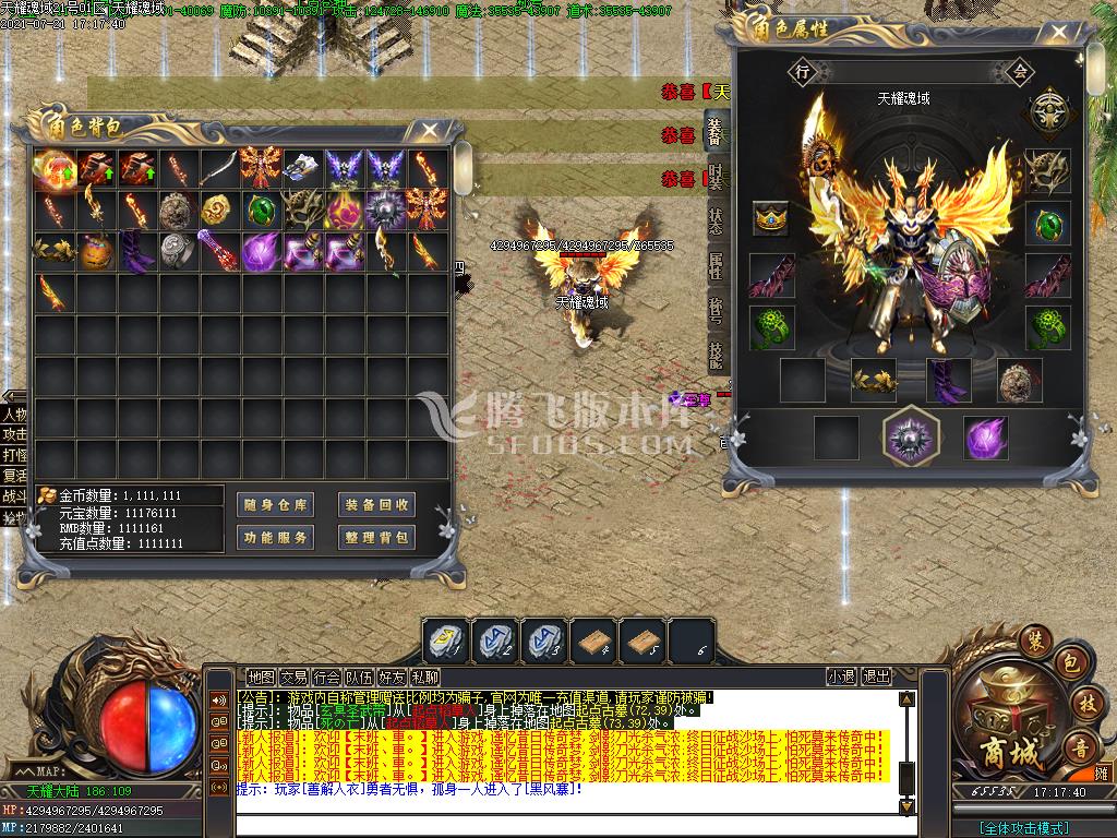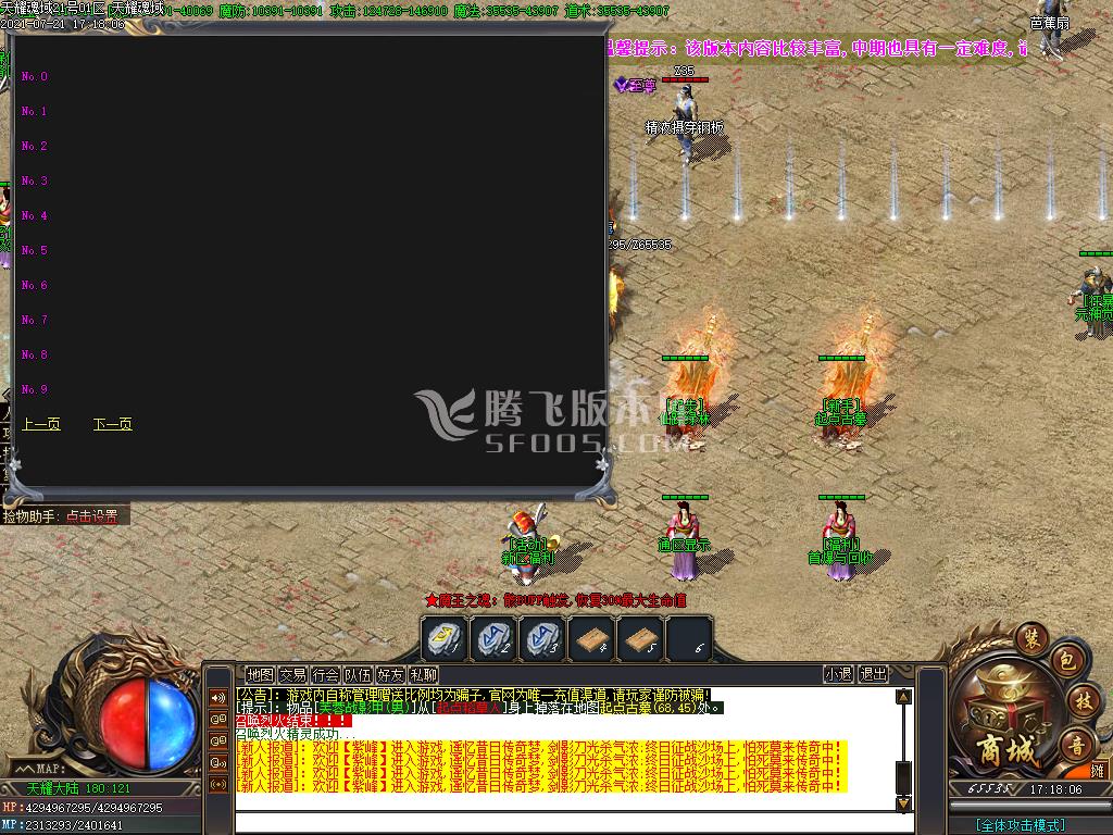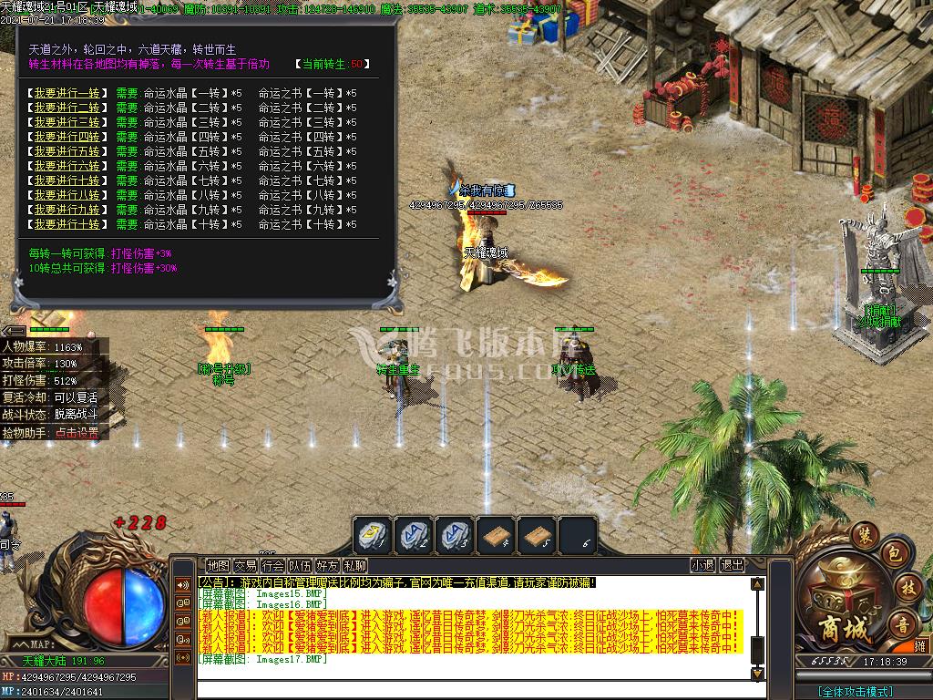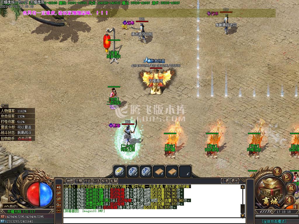玛法之城增加天耀魂域十五层地图,刷全服所有BOSS,可爆出全服所有装备,进入条件转生10转
